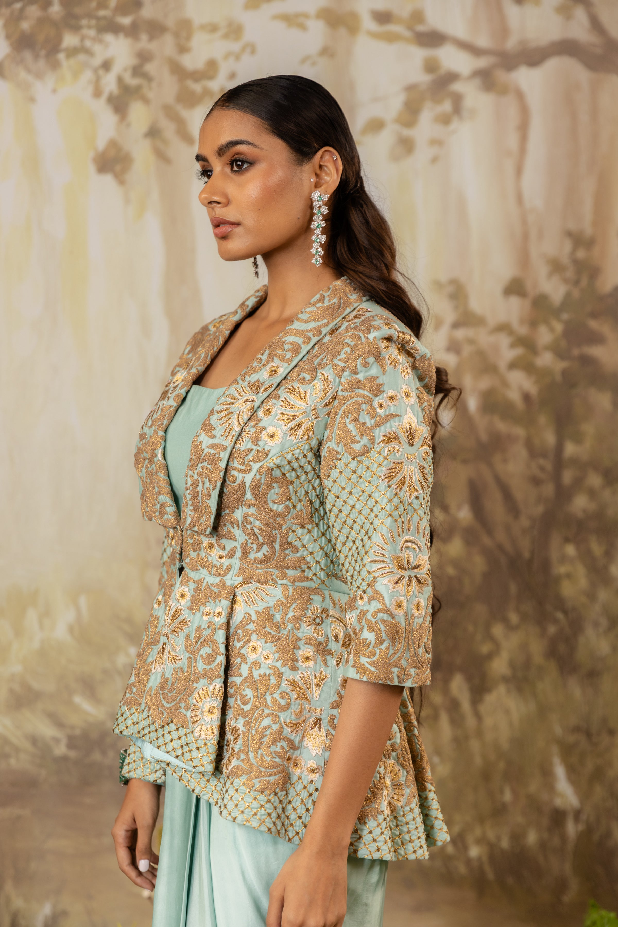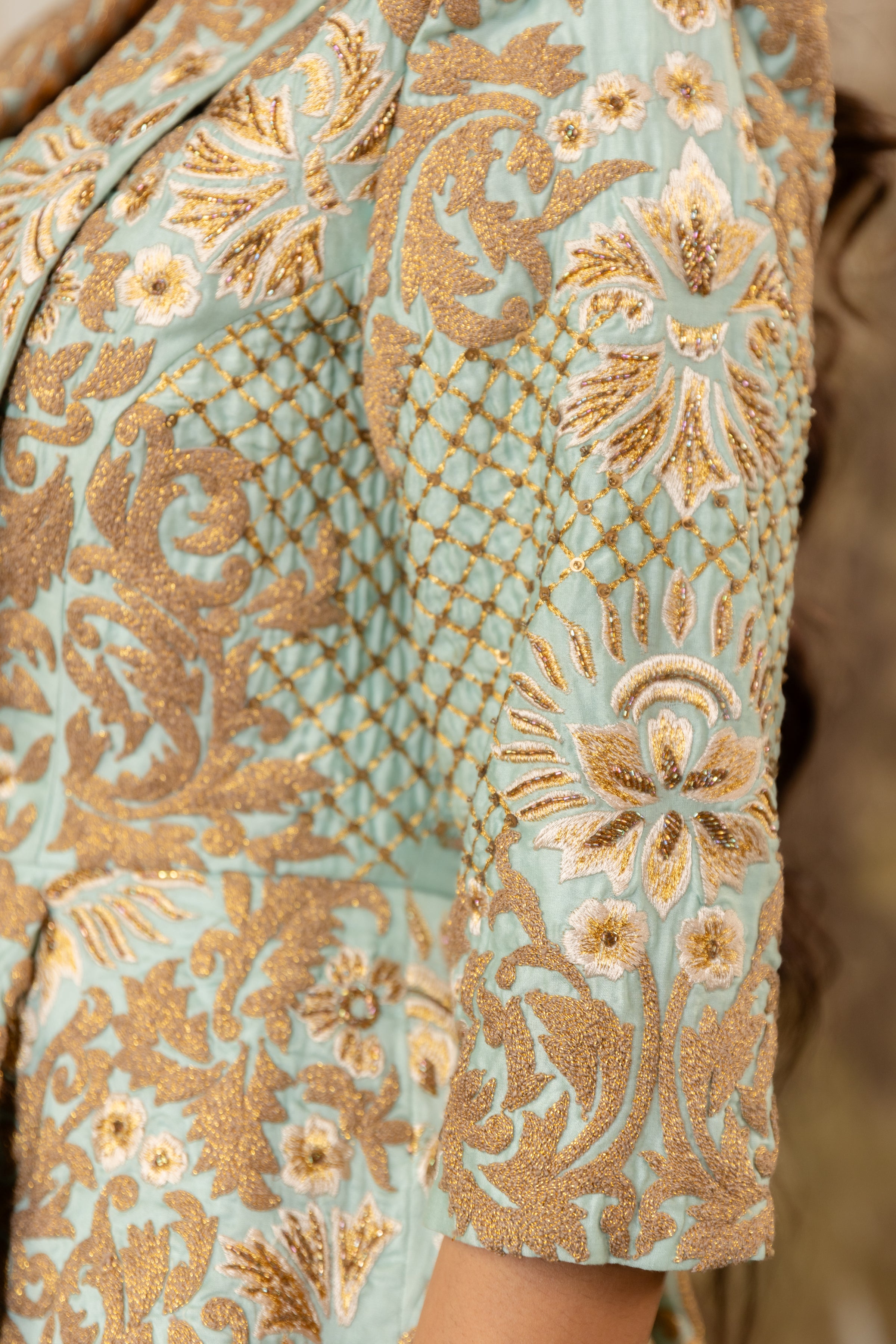 Fabric: Silk Chanderi (jacket), Bemberg Satin (skirt)