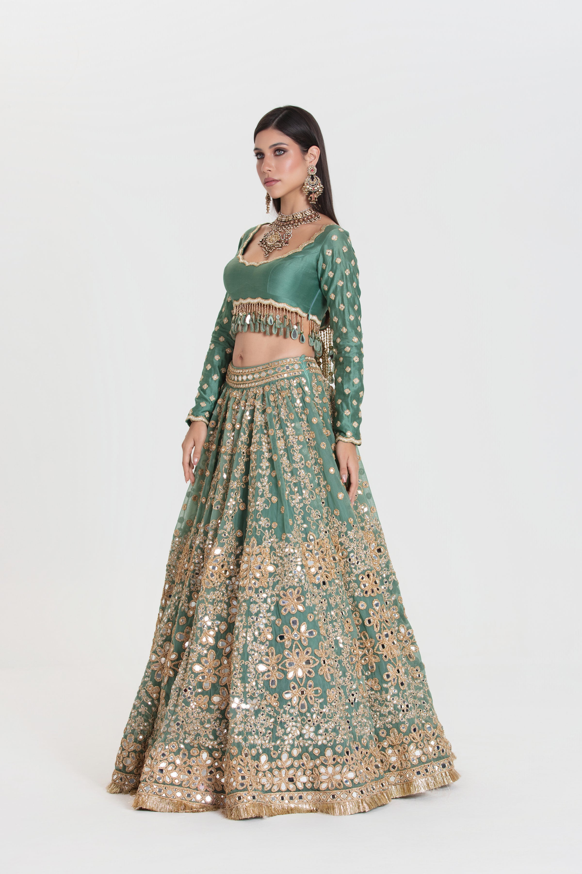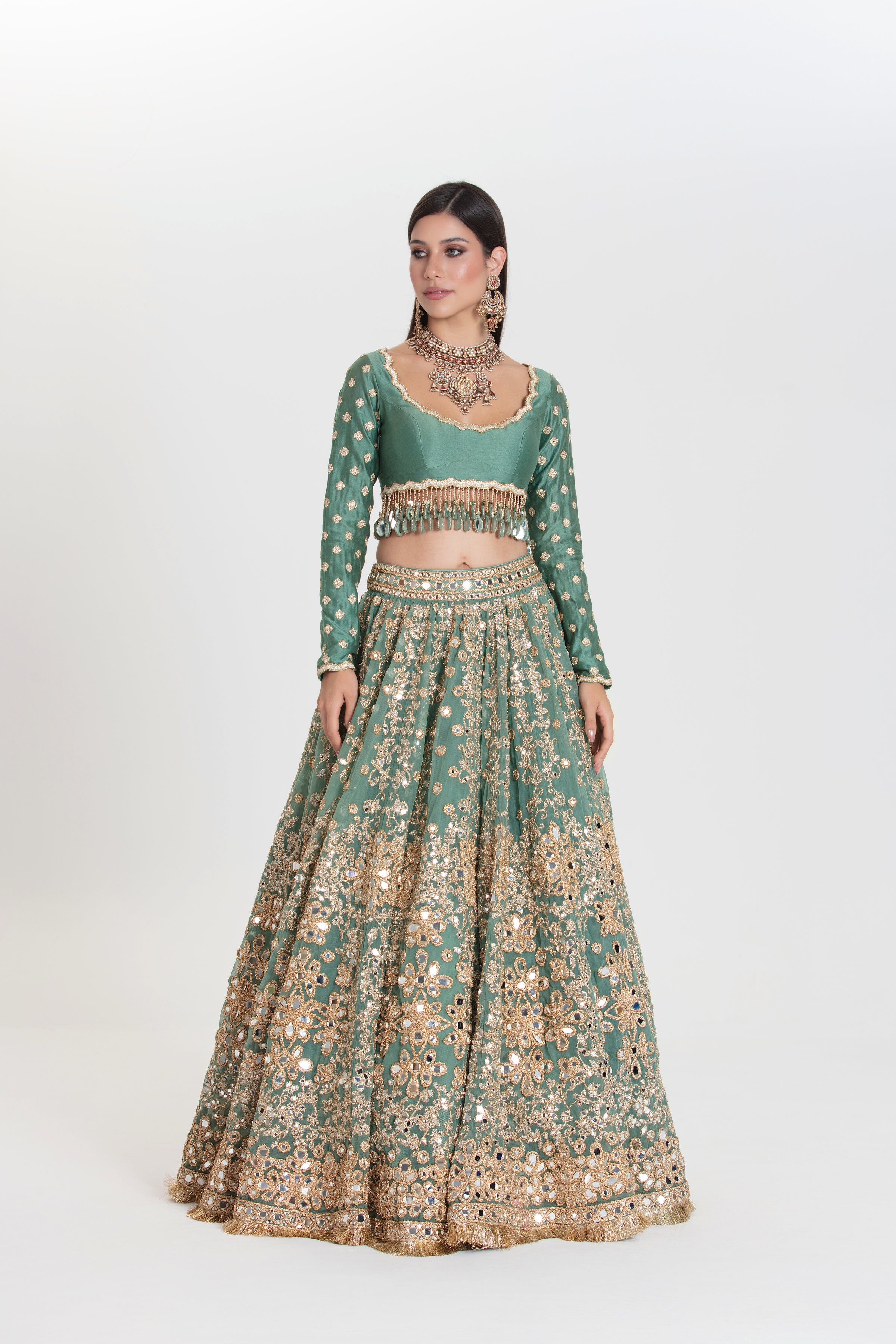Fabric Description:- MIRROR,ZARI,DORI THREAD , SEQUINS