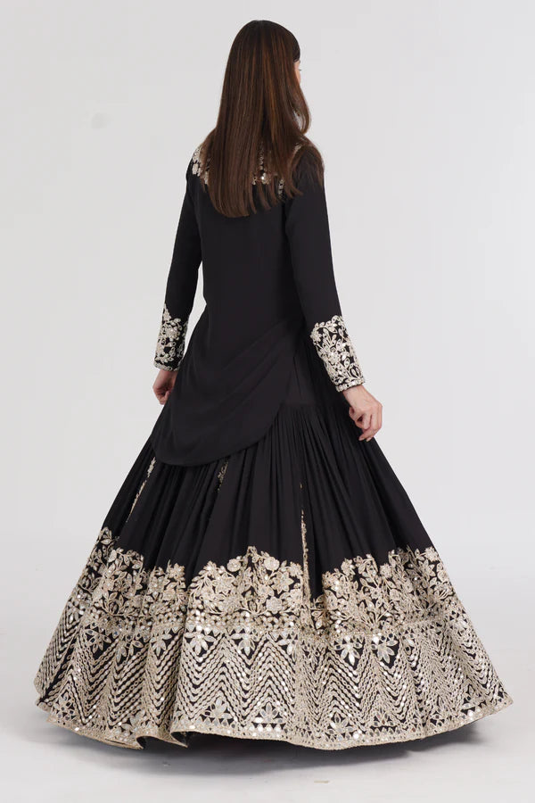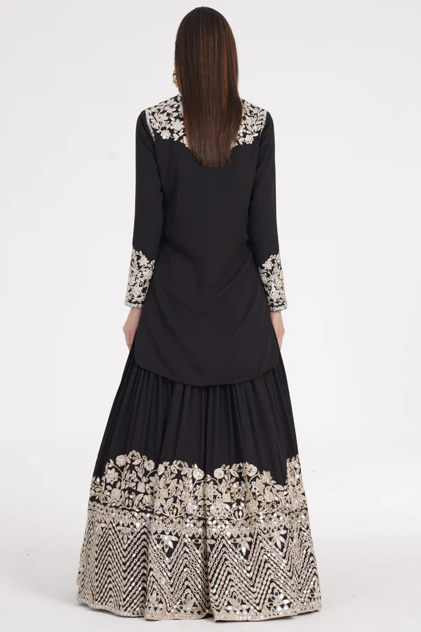 Fabric Description:- Shirt- special black georgette , skirt- black georgette
