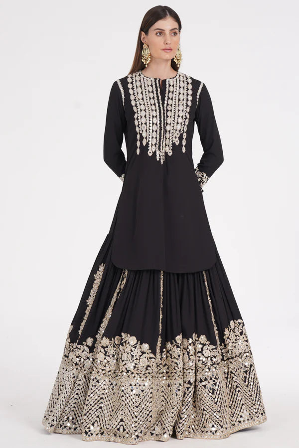 Carbon Black Kurti Skirt Embellished Using Ivory Trims