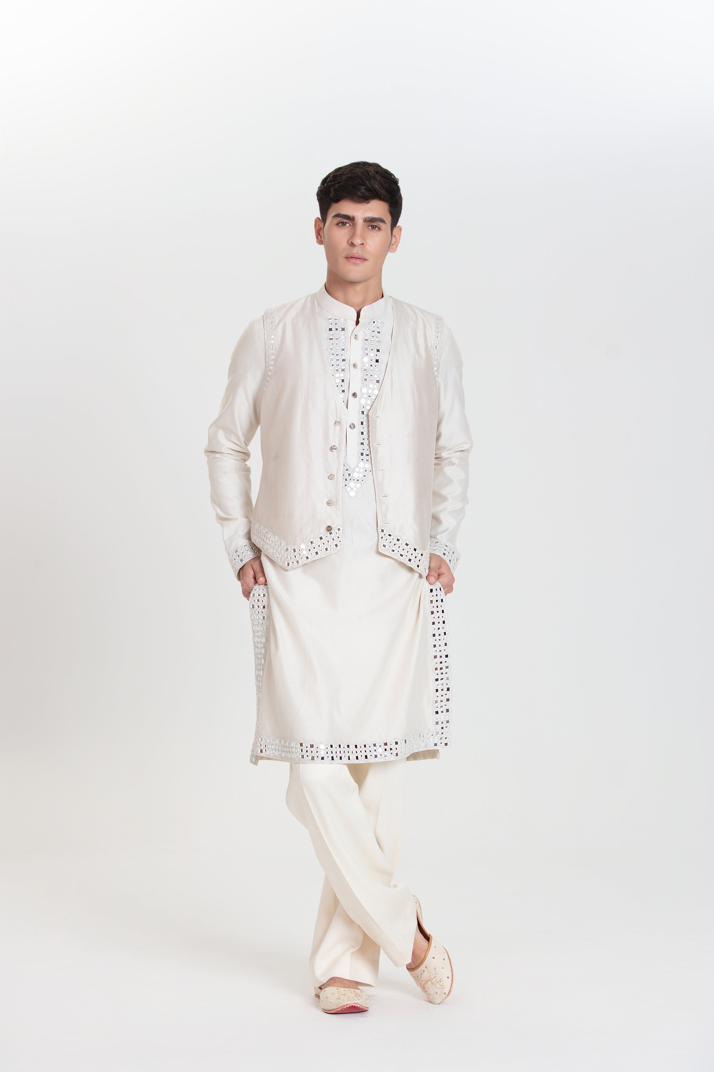 Ivory Waistcoat Bundi Set