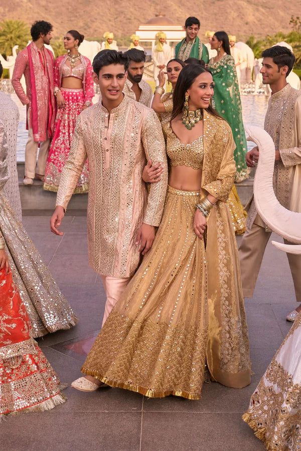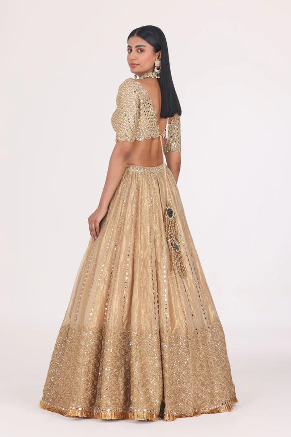 MIRROR EMBELLISHED TISSUE LEHENGA SET