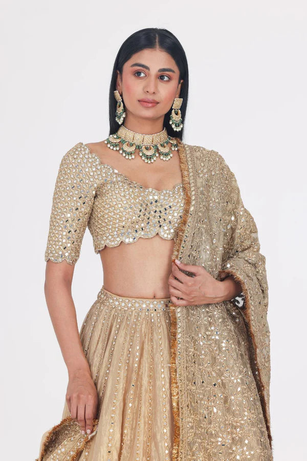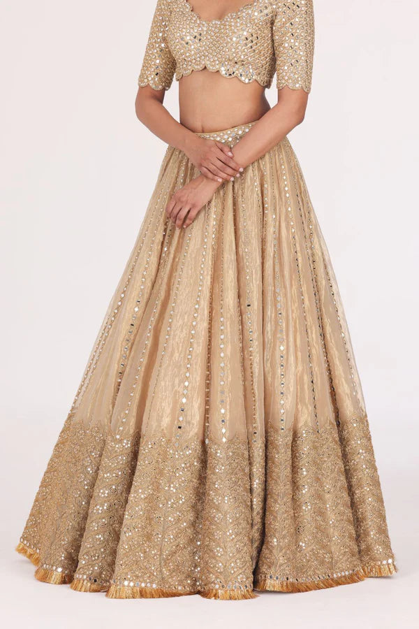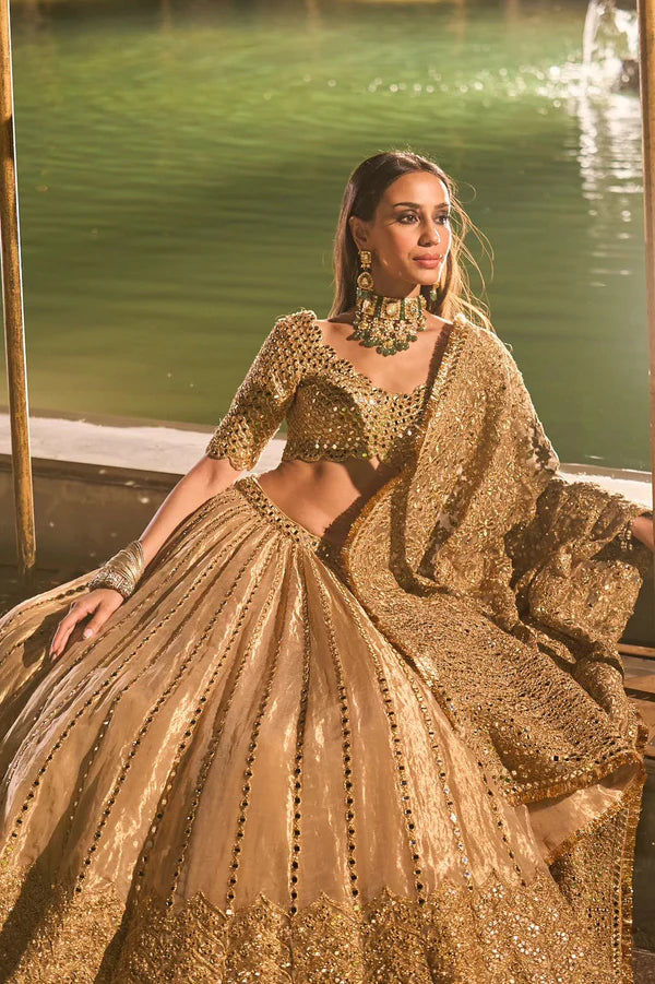 MIRROR EMBELLISHED TISSUE LEHENGA SET