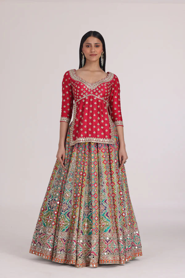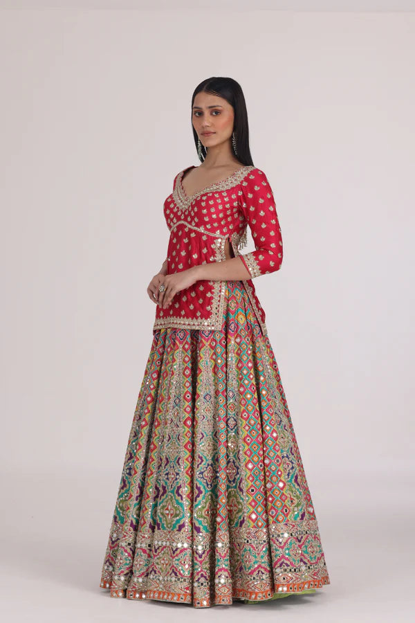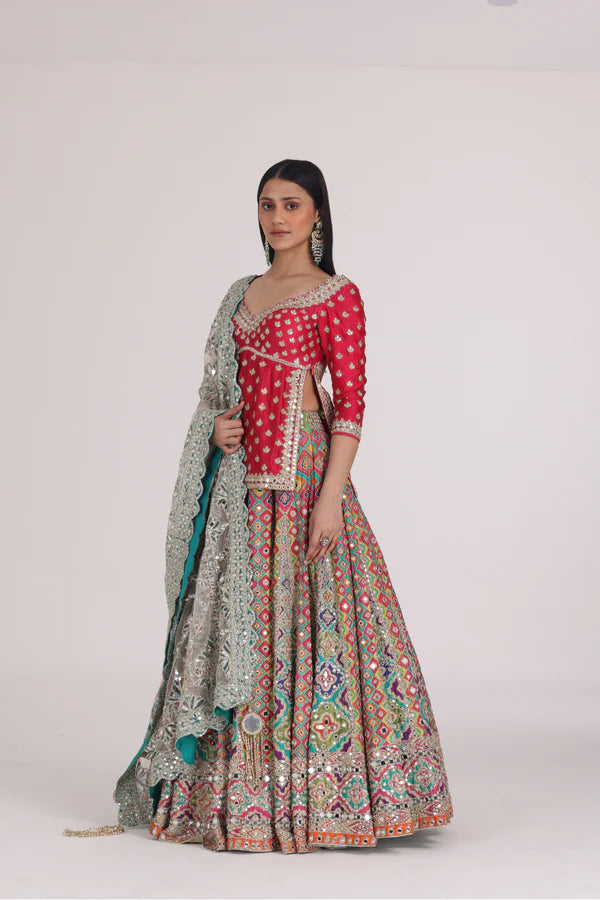 MULTICOLOUR BEGAM CHOLI LEHENGA SET