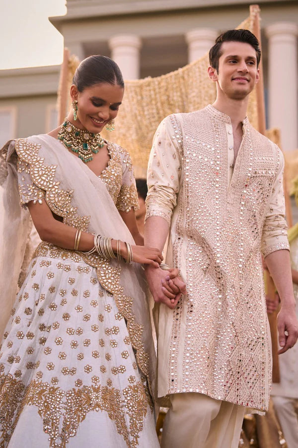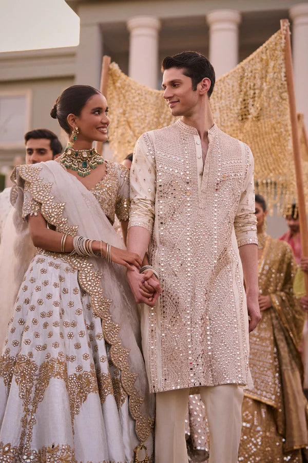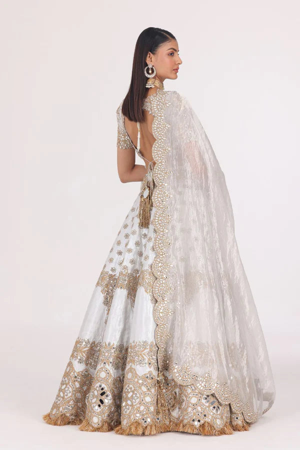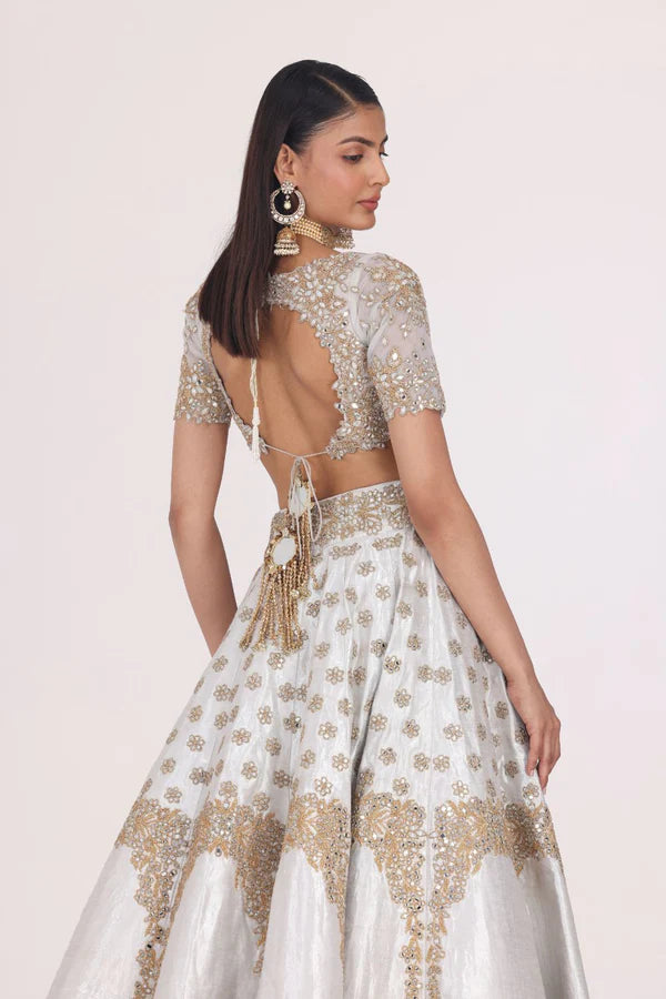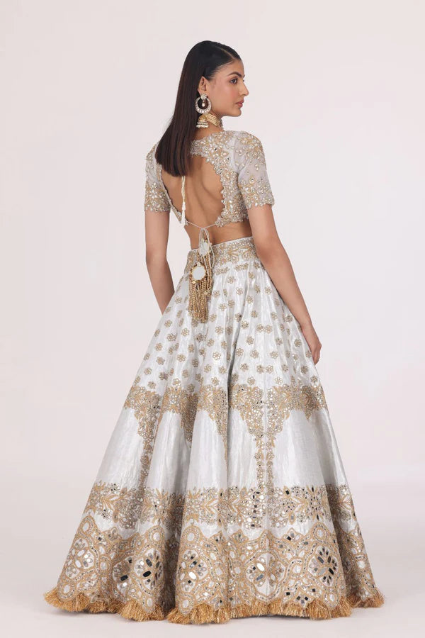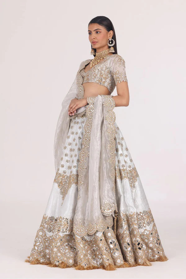 SILVER GOLDEN EMBELLISHED LEHENGA SET