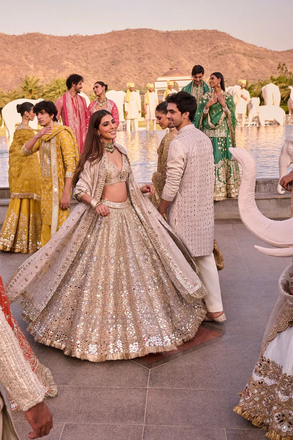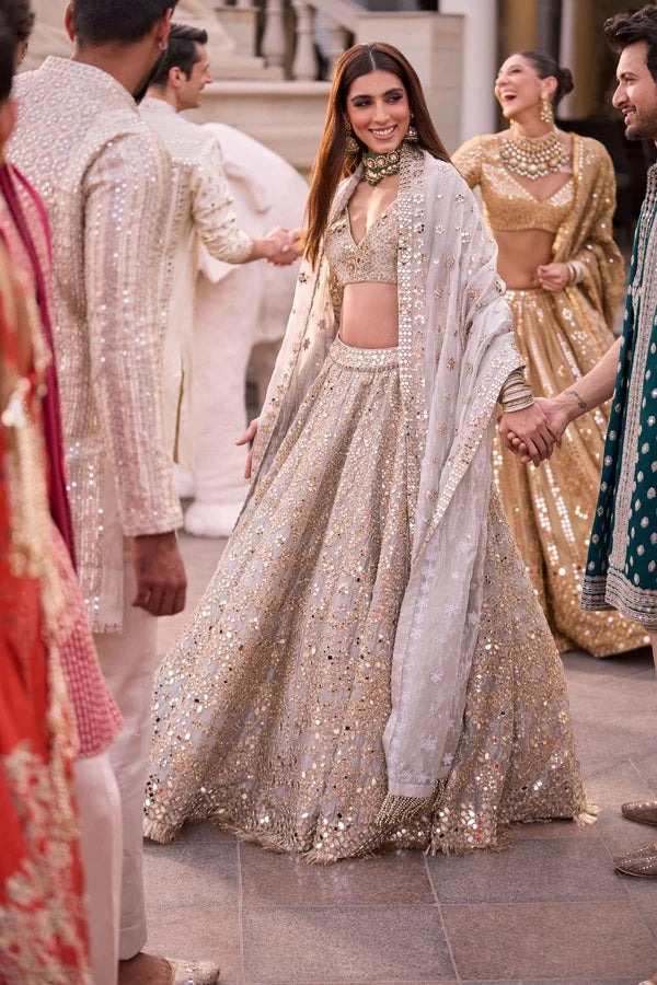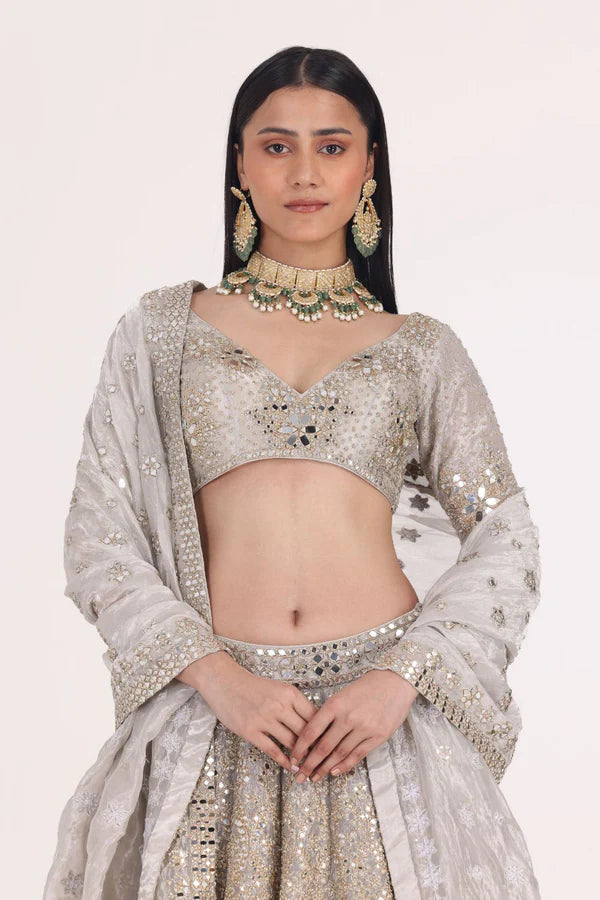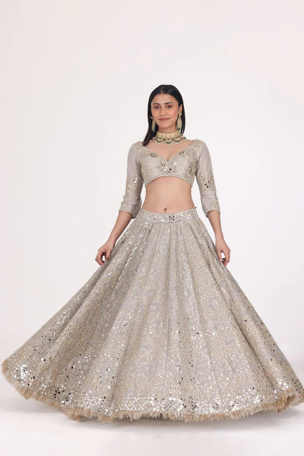 SILVER TISSUE EMBELLISHED LEHENGA SET