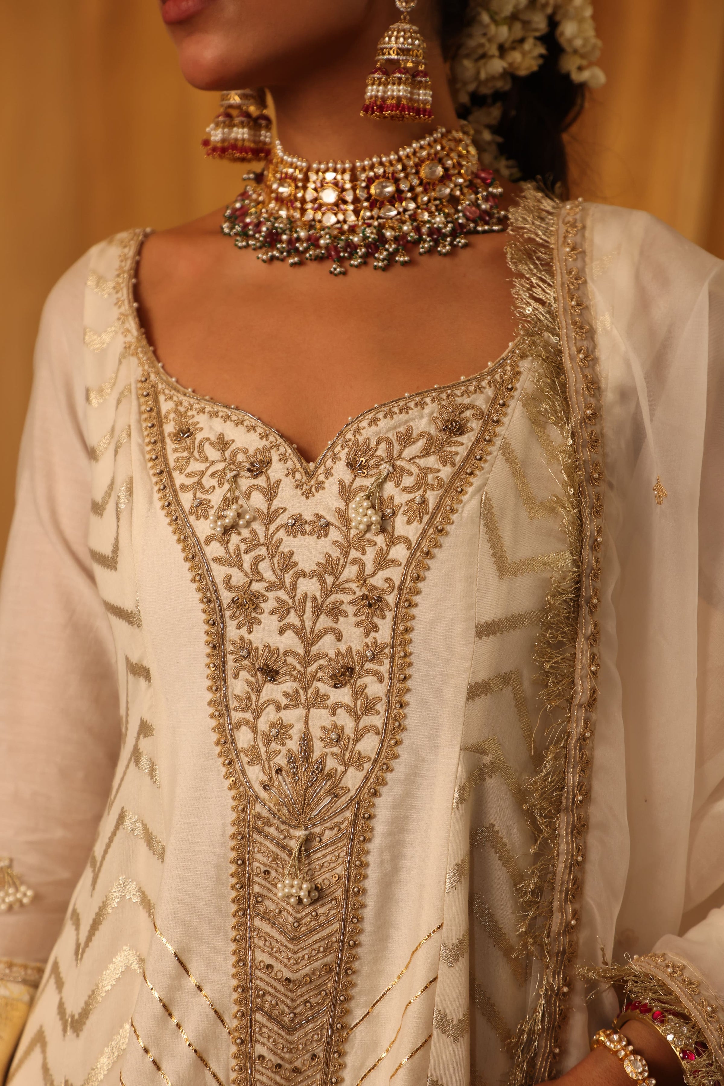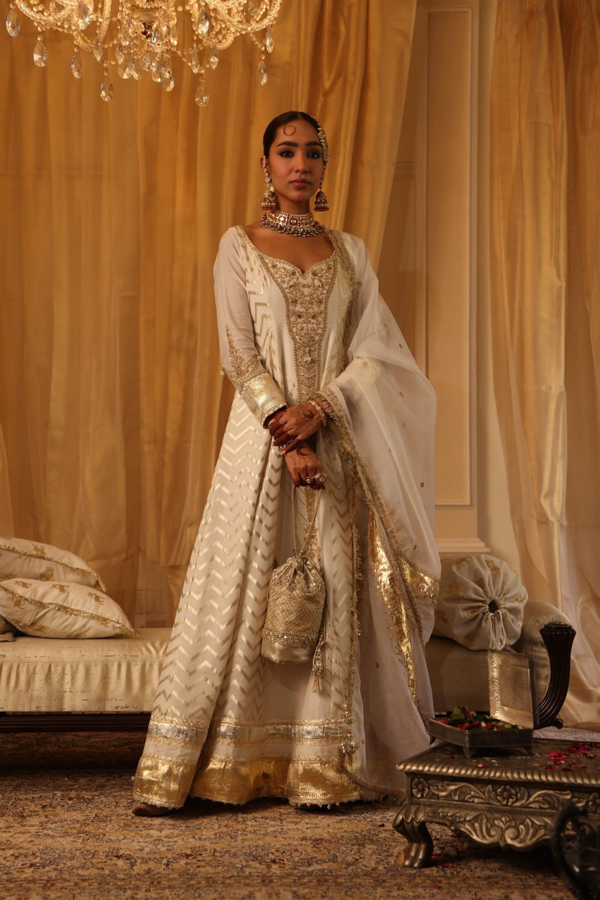 Ivory Chanderi Silk Anarkali Set