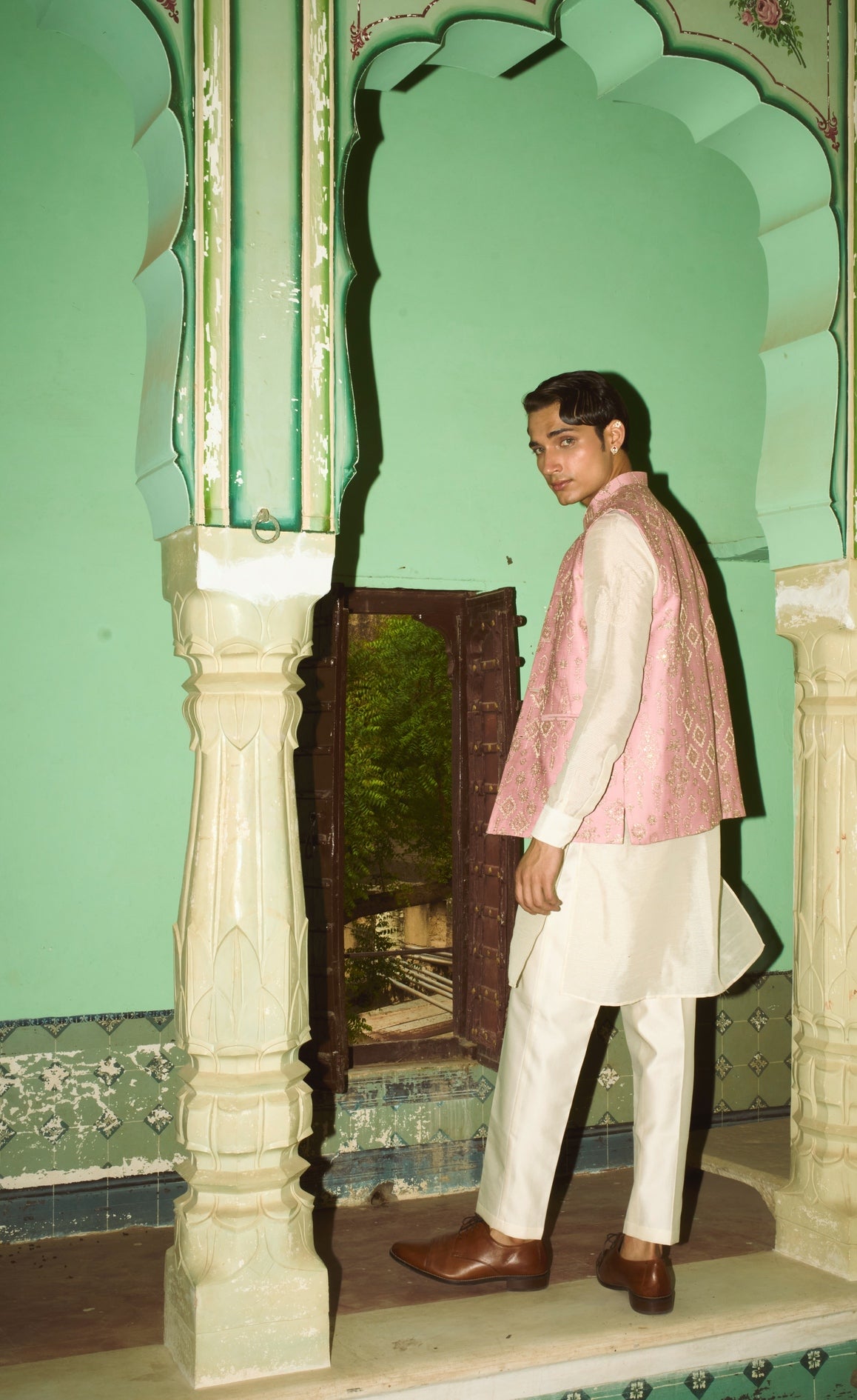 Powder pink Chanderi textured jacket