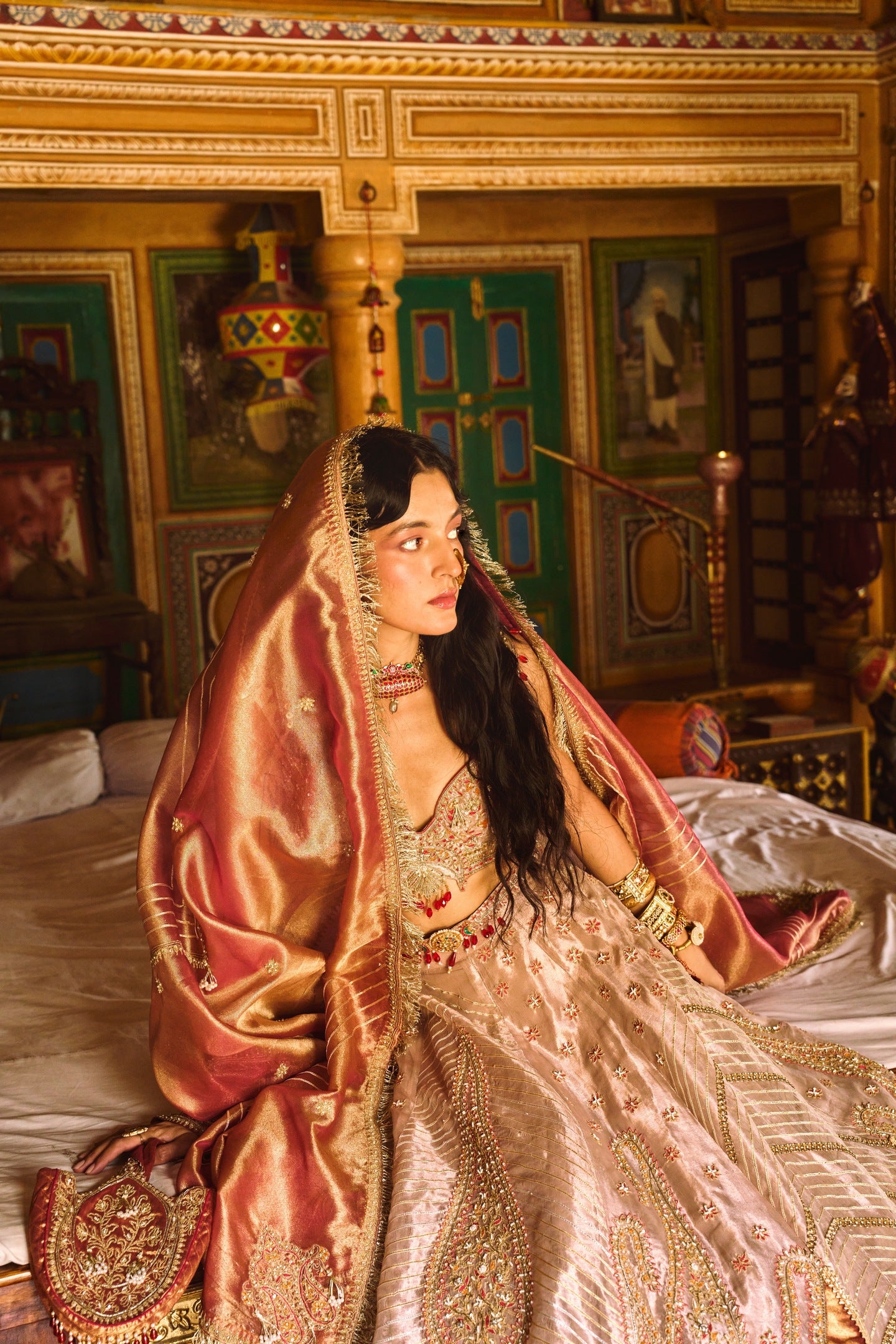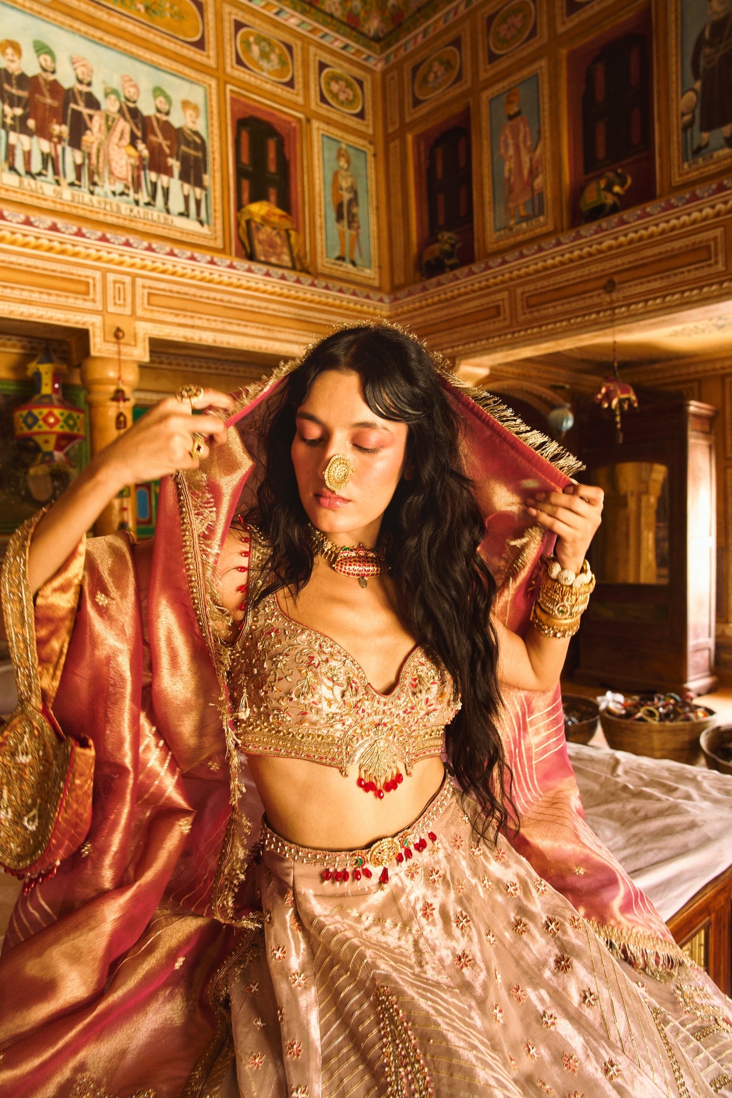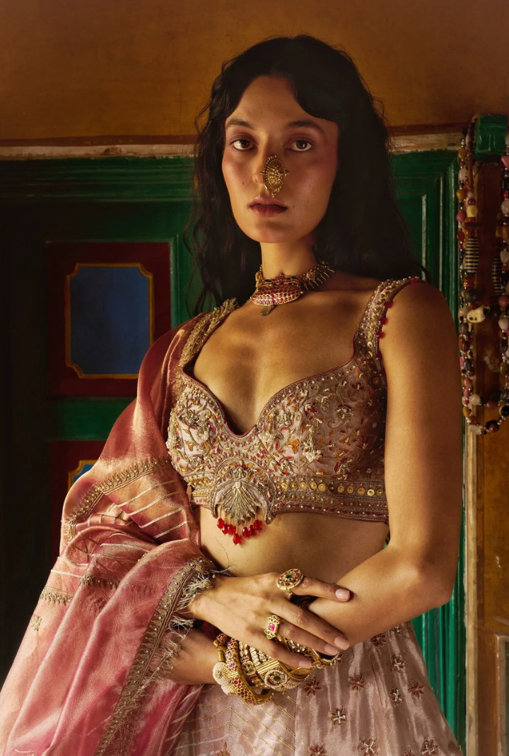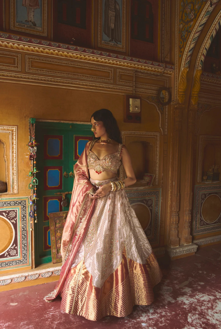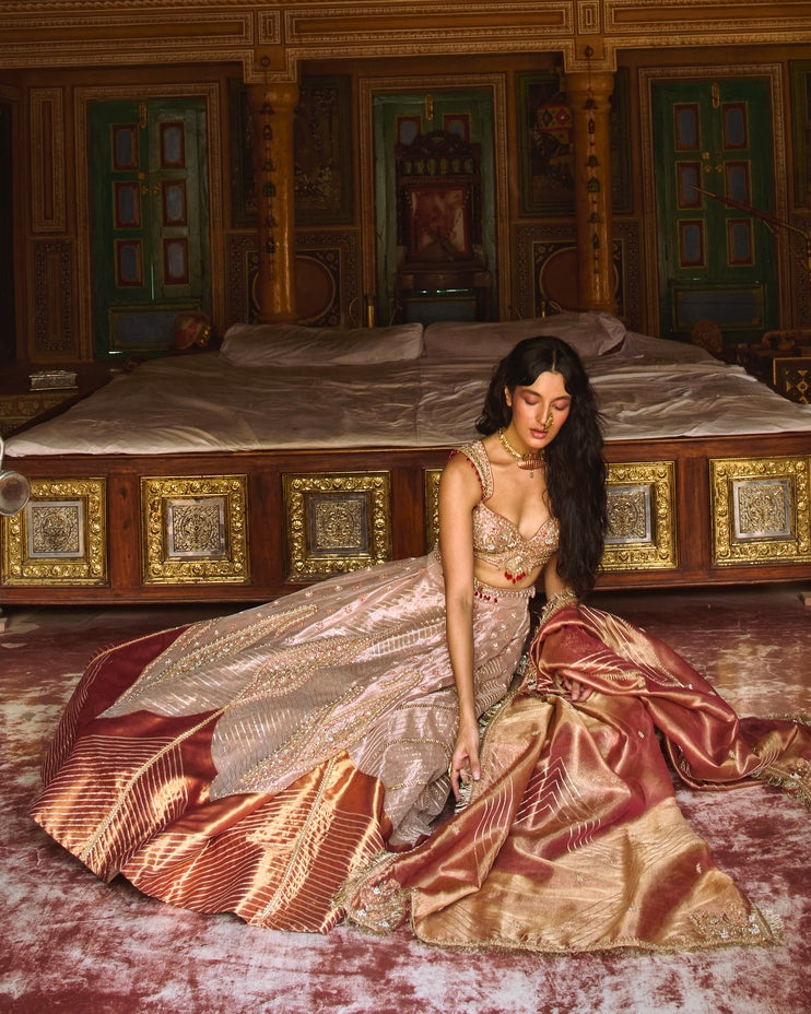 Rose Gold Puri Zari Tissue Lehenga Set