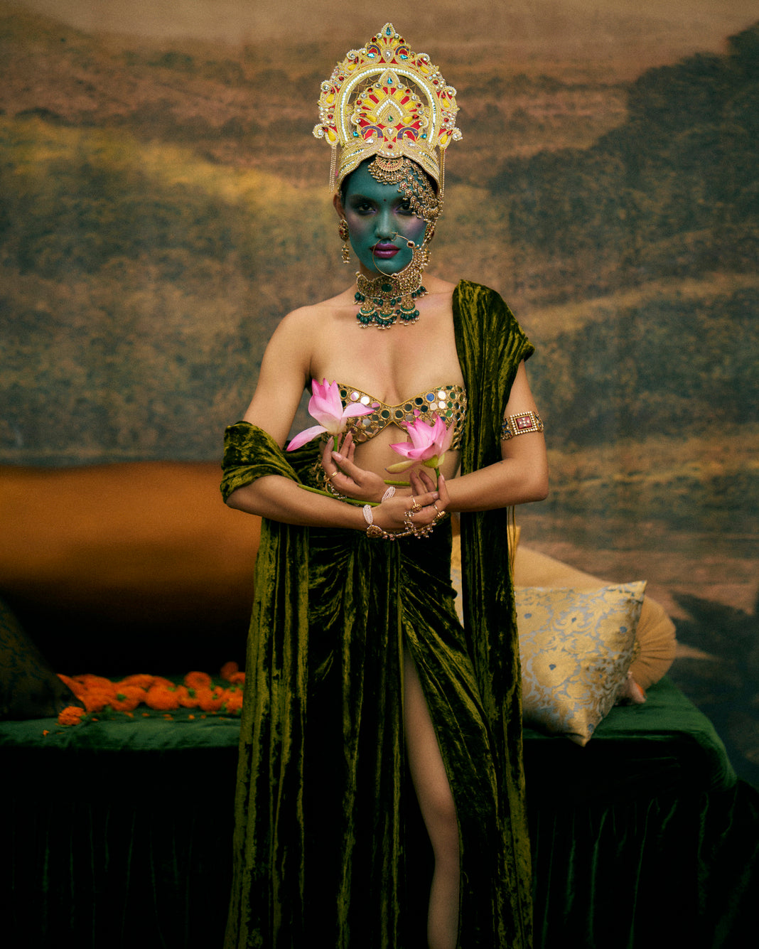 Fabric:- Lampi Gota, Chanderi, Velvet