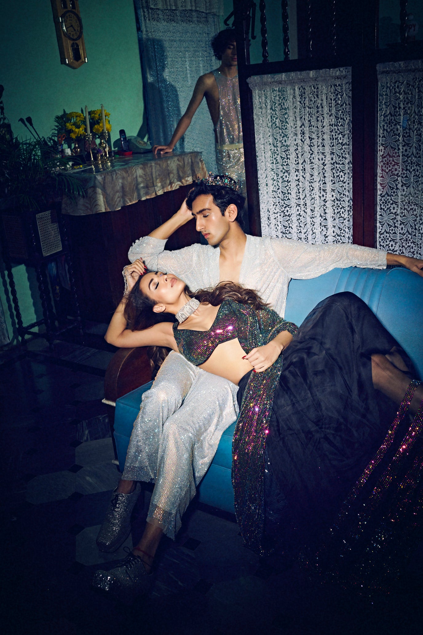 Embellished Pre-draped Saree in Captivating Black Shade Paired With Curve Deep Blouse