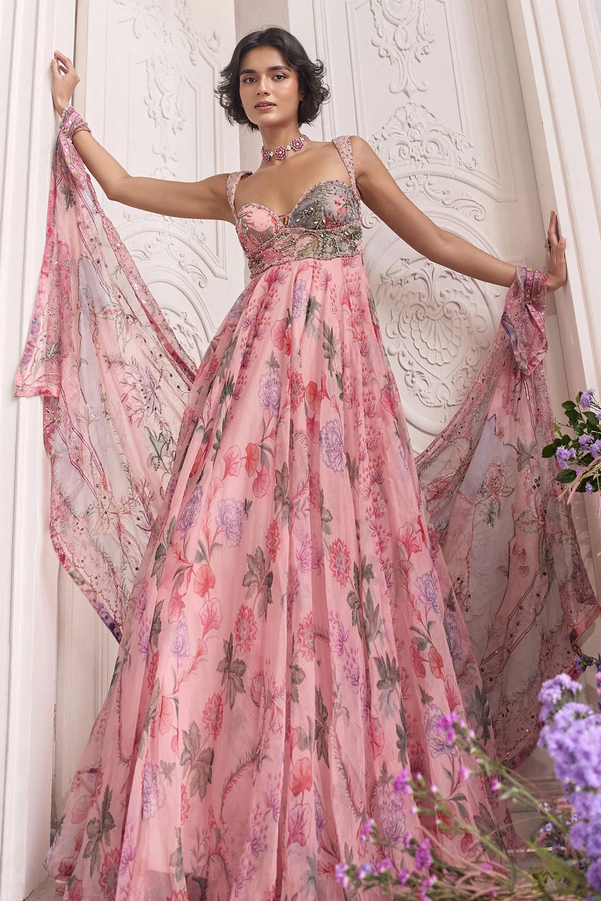 HAND EMBROIDERED ANARKALI PAIRED WITH HEAVY EMBROIDERED DUPATTA