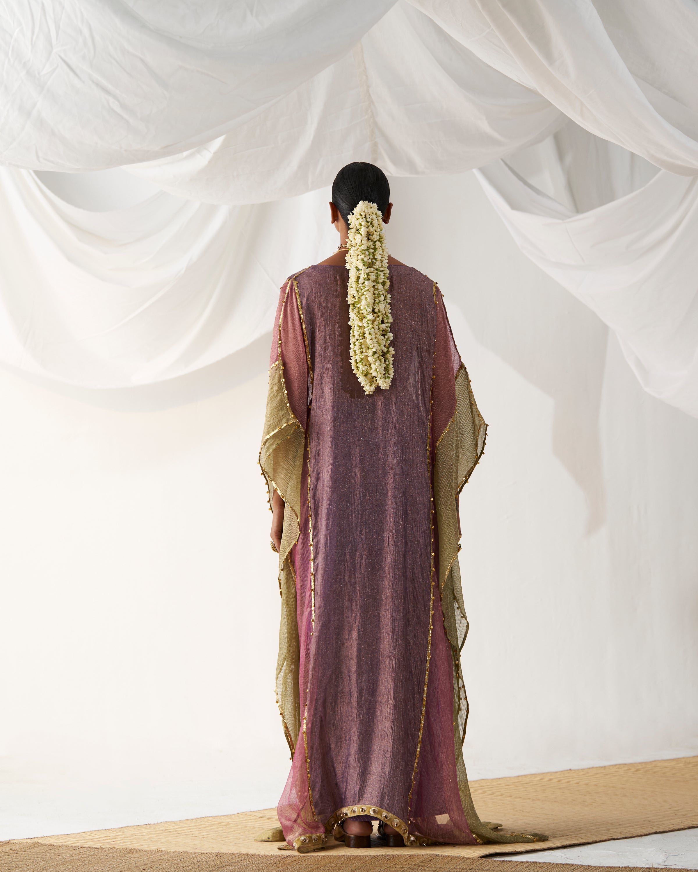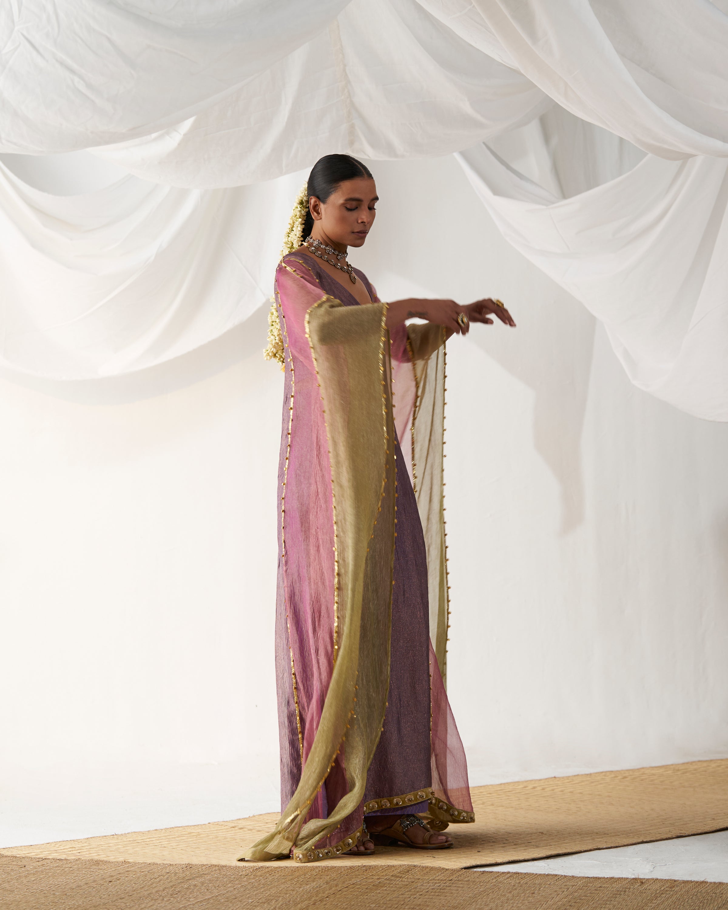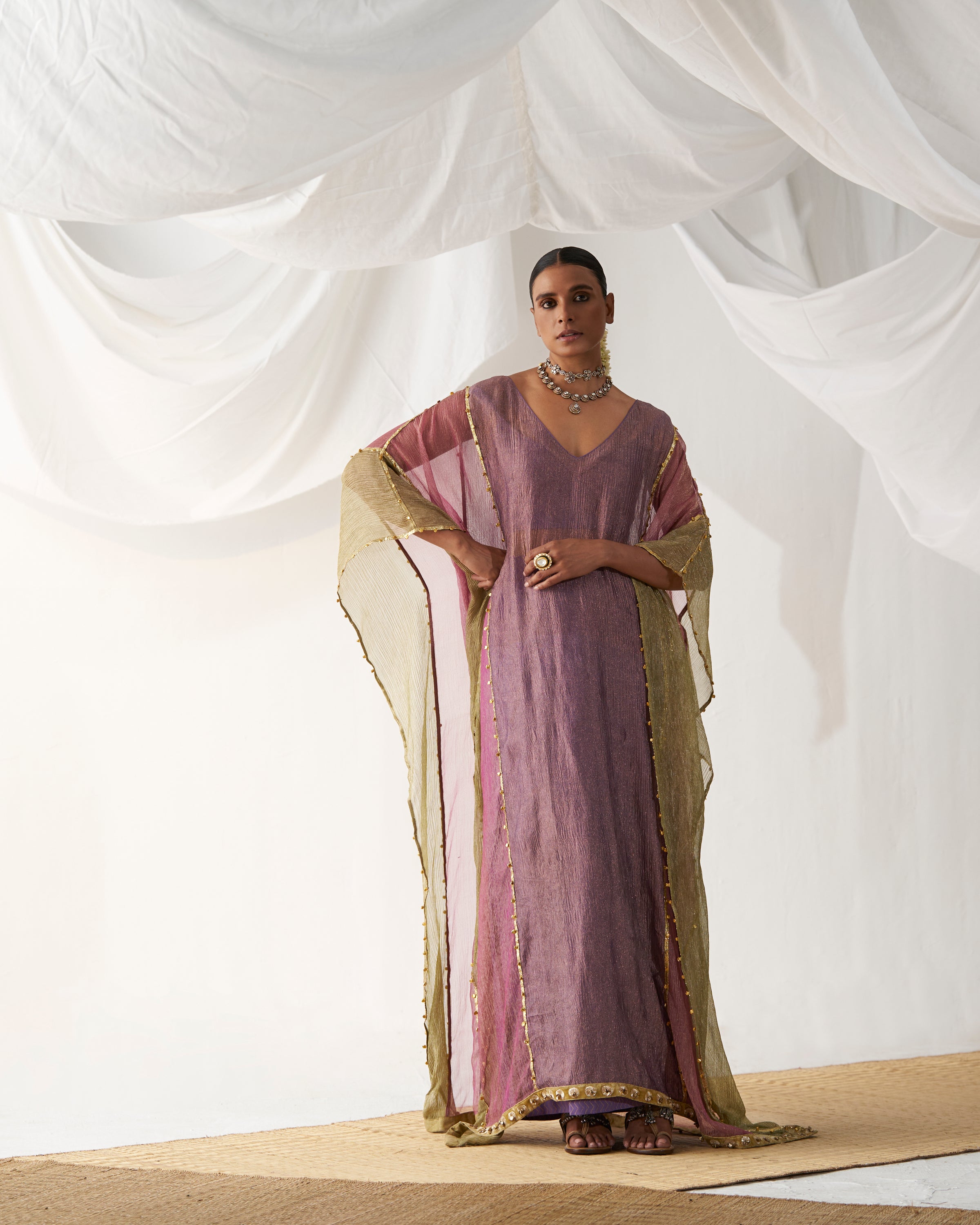 Color blocked kaftan with ghunghroo and vertical gota stripes detailing