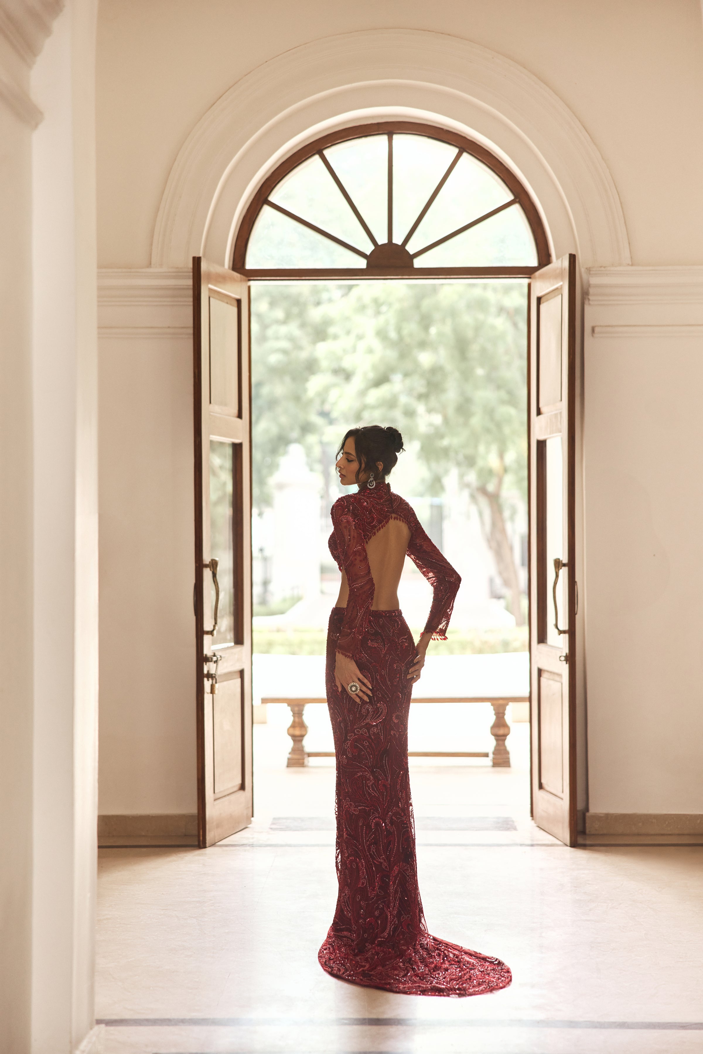 Maroon Embellished Trail Skirt Set