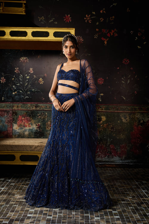 Dark Blue Embellished Mermaid Skirt Set