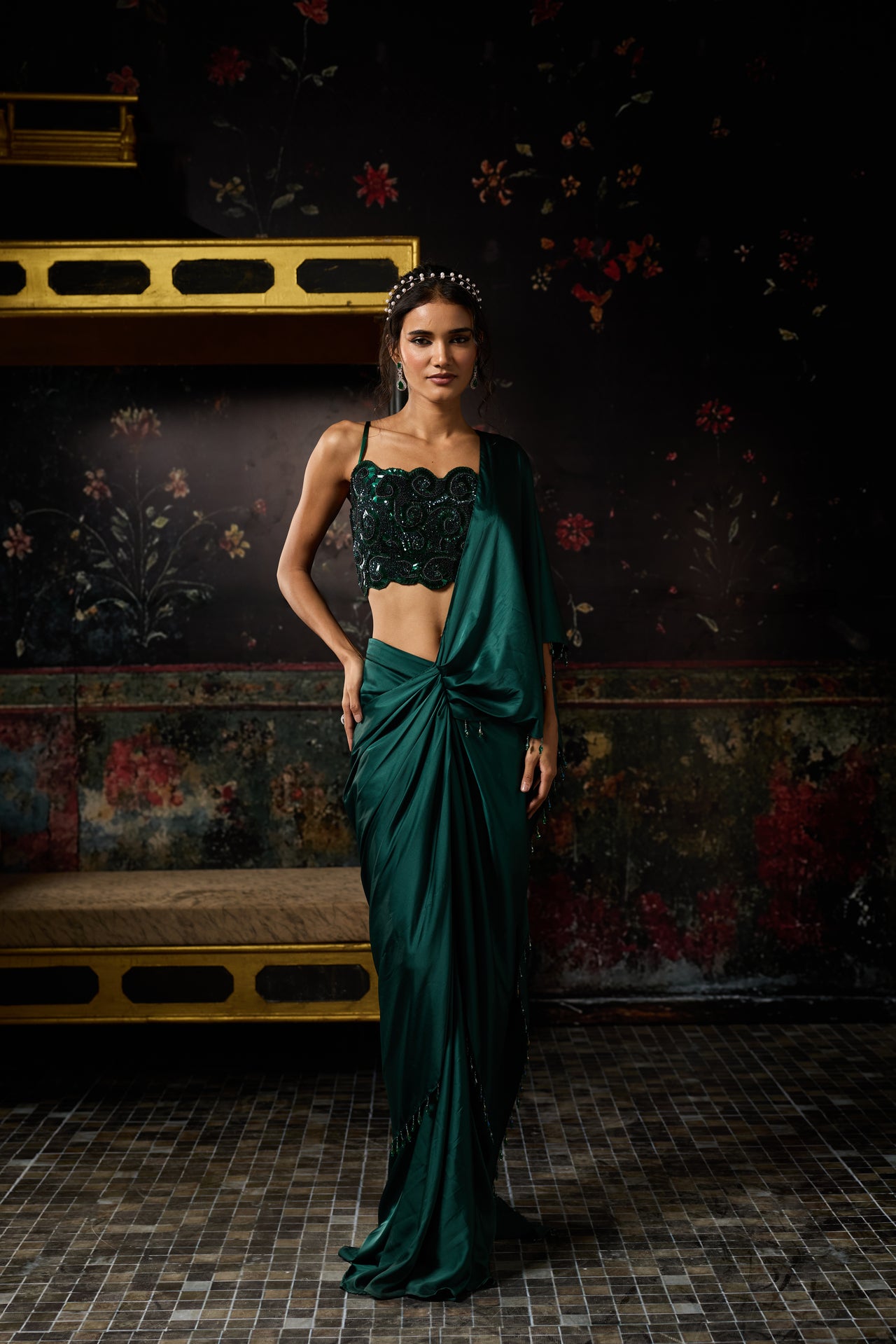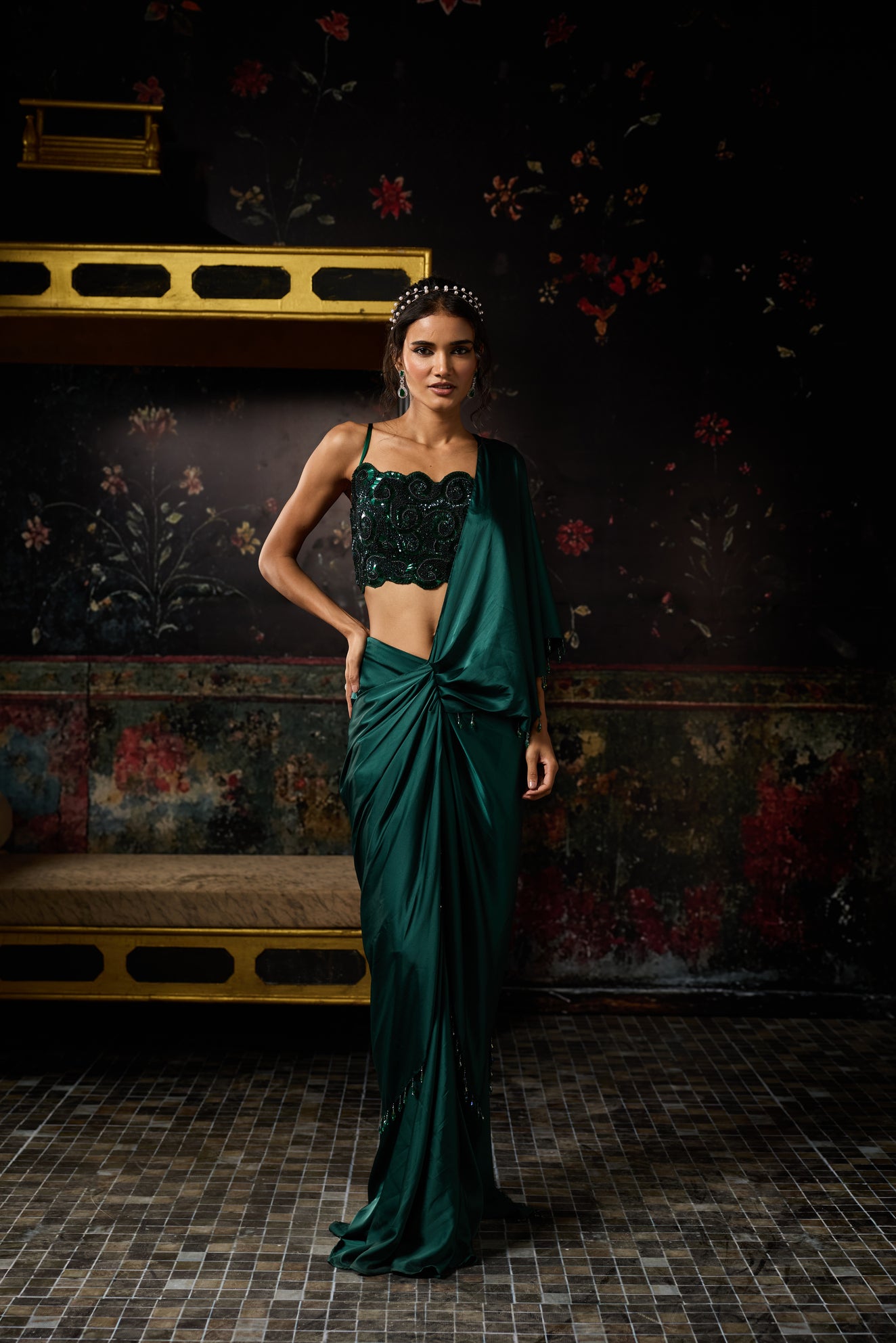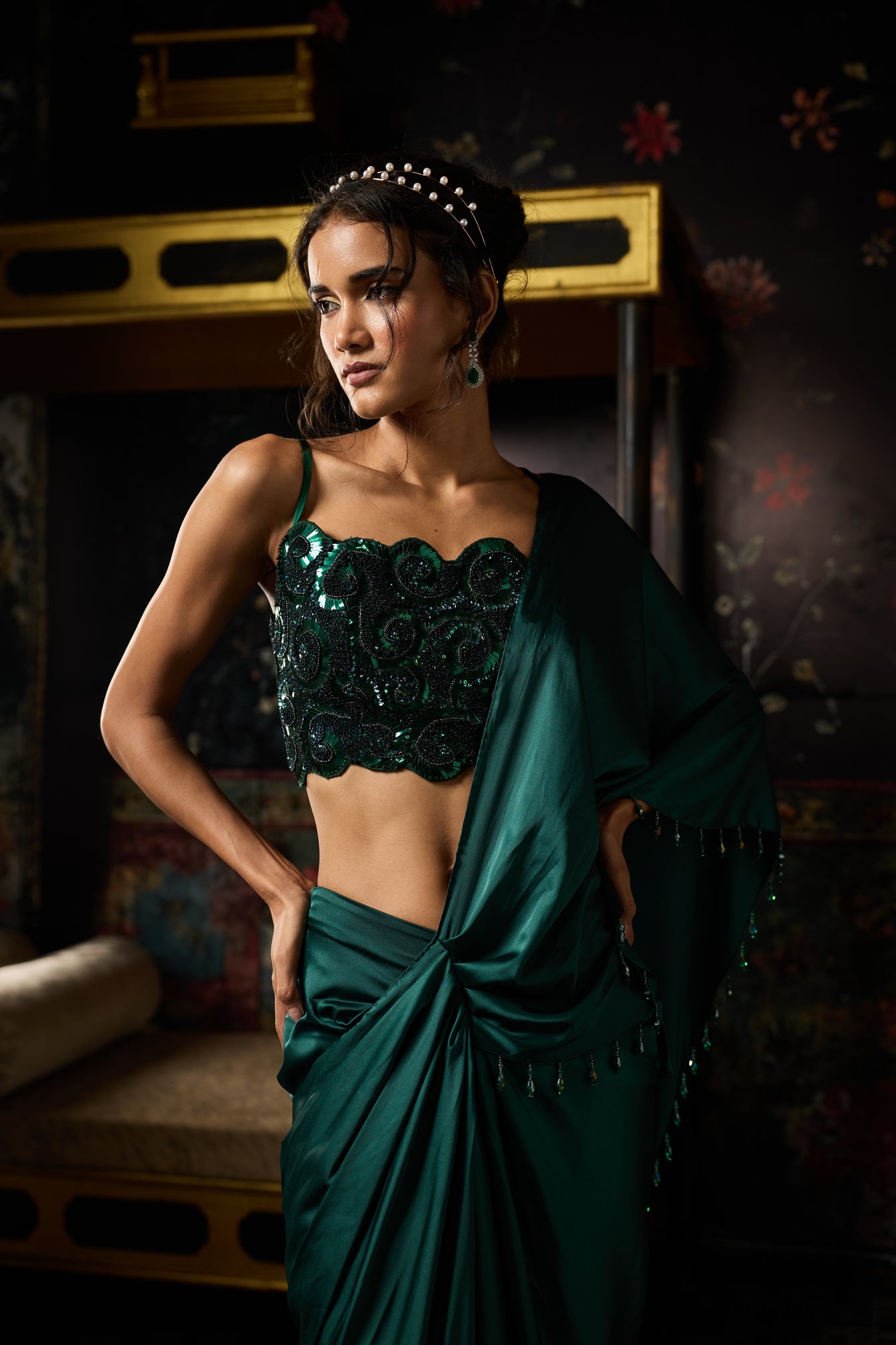 Emerald Green Embellished Dhoti Skirt Saree Set