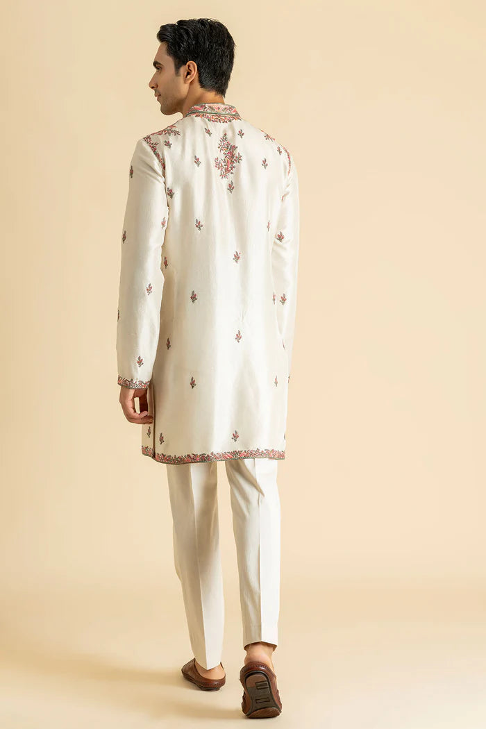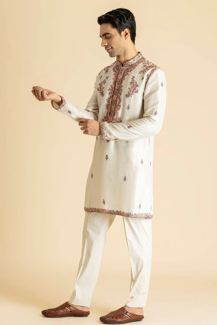 Soft Ivory Meets Blush And Green Threadwork—This Kurta Set Feels Like A Garden In Quiet Bloom. Hand-Finished Kashmiri Embroidery Gives It Texture And Soul, Perfect For Day Functions And Pastel-Themed Occasions.