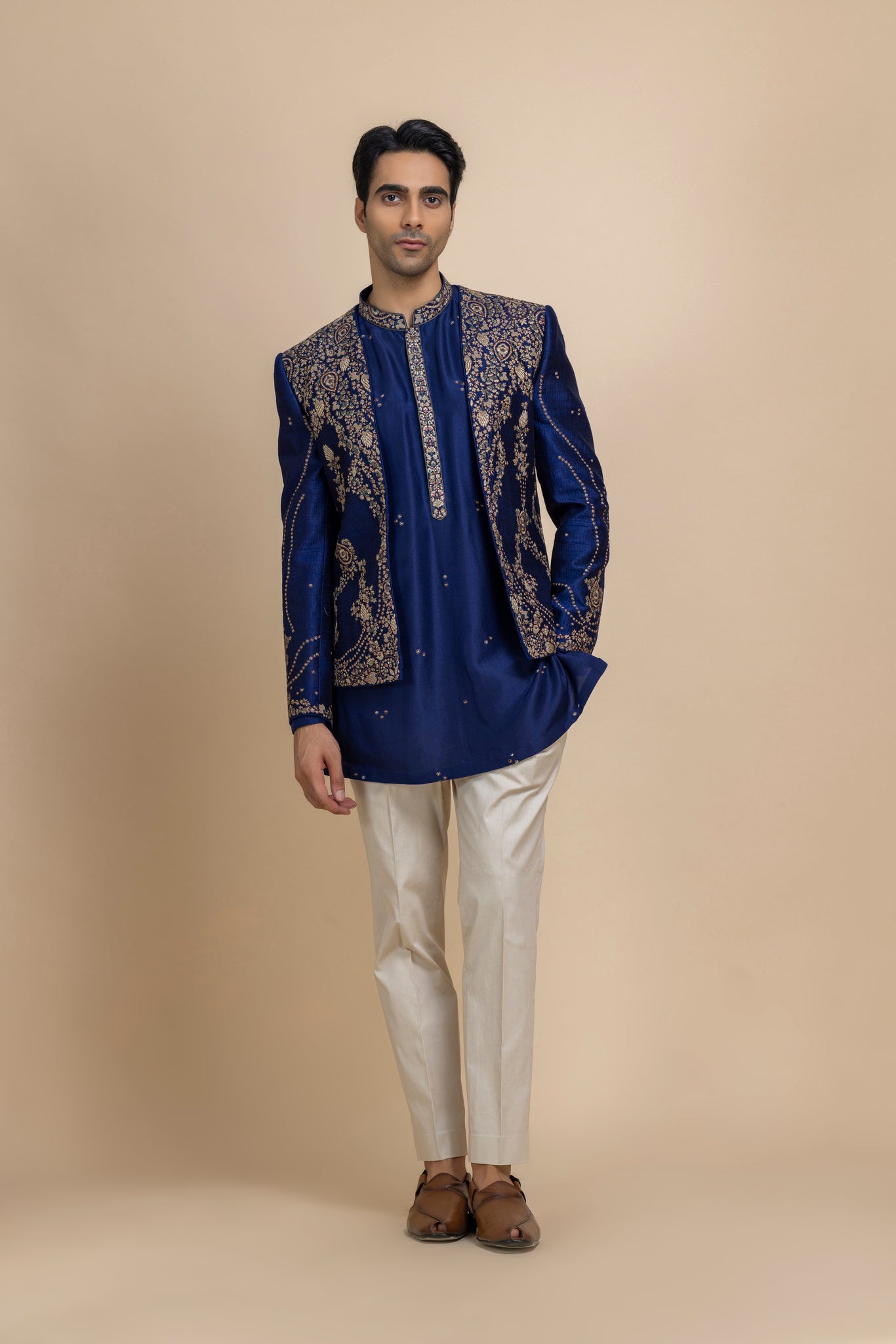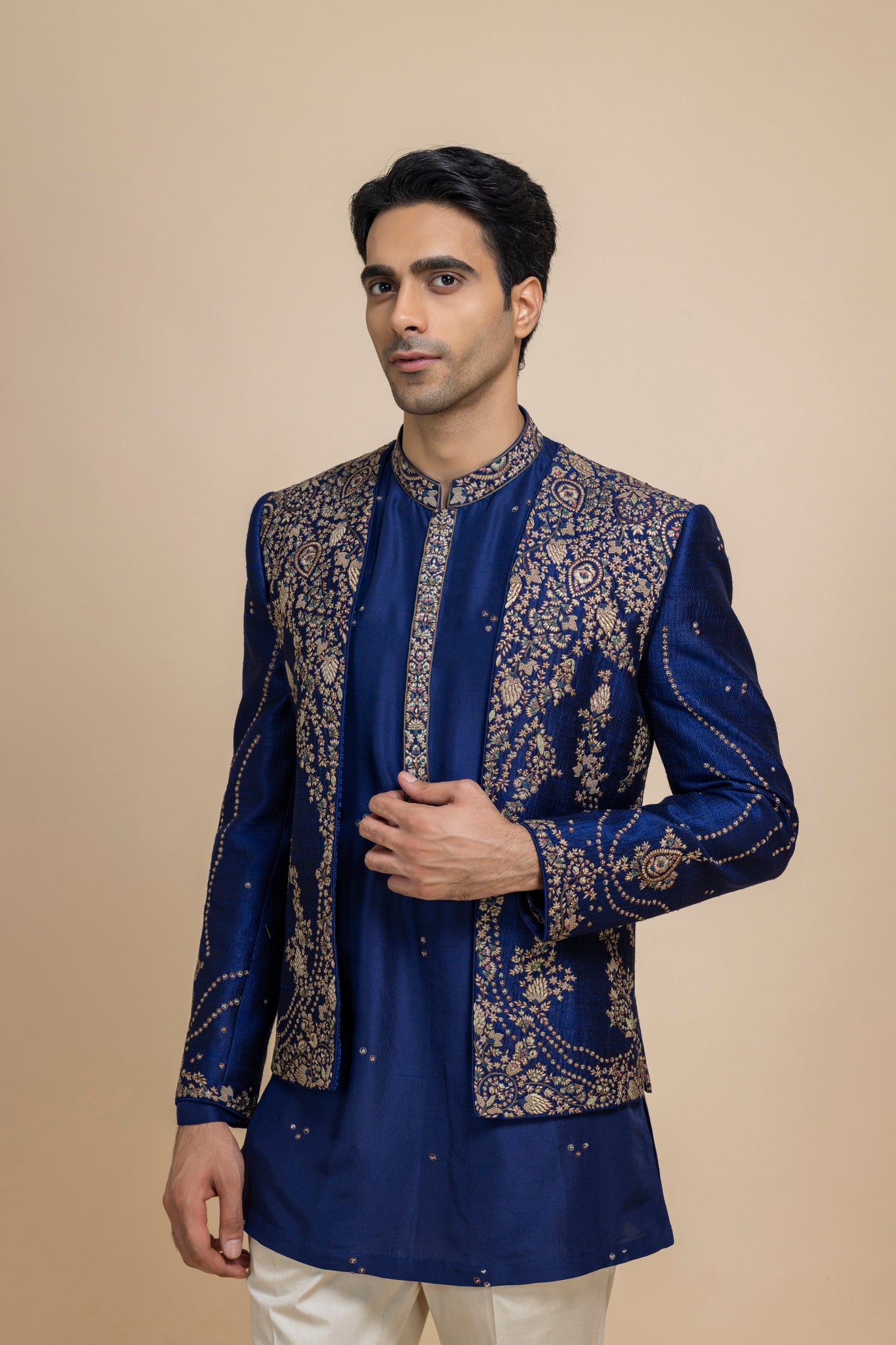 Sterling Royal Blue Open Jacket, Kurta & Pant Set