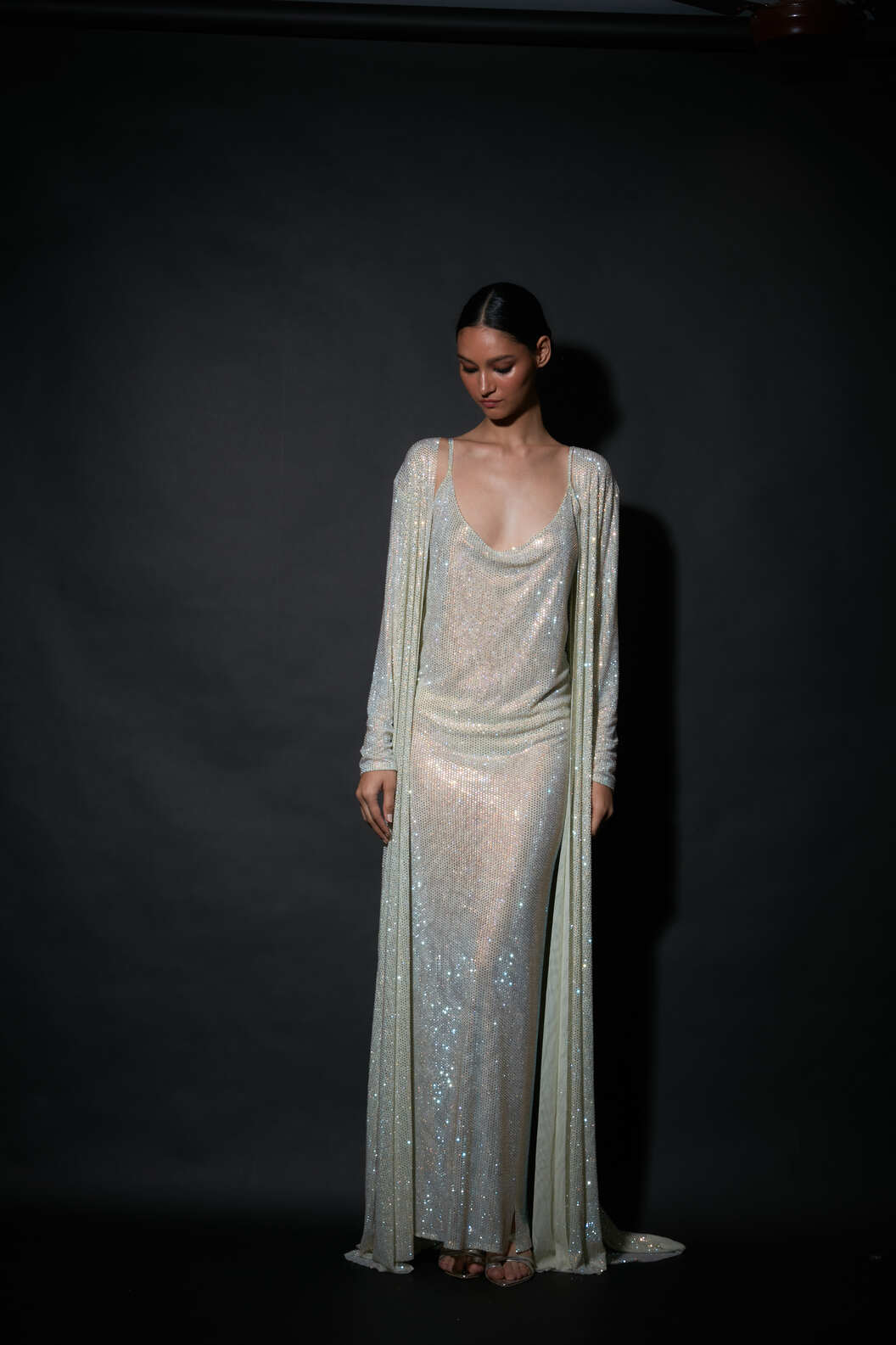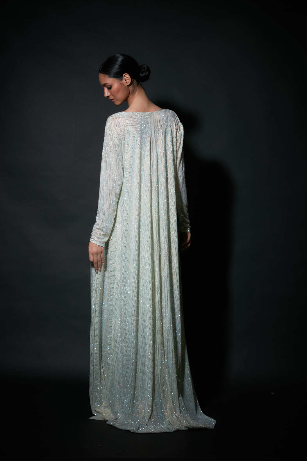 Embellished Long Comfy Dress Paired With Long Churi Sleeves Jacket