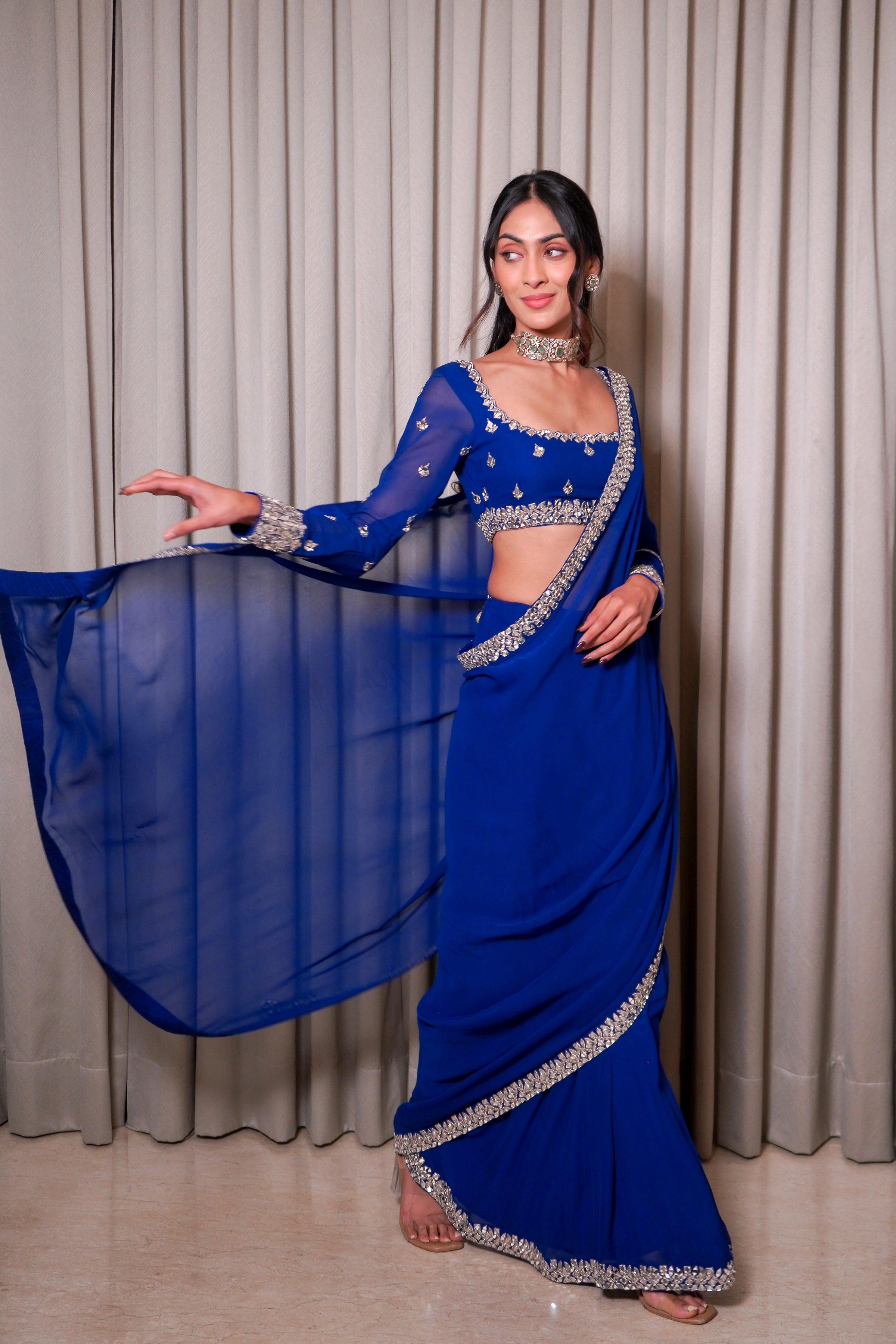 Elcetric Blue Saree Set