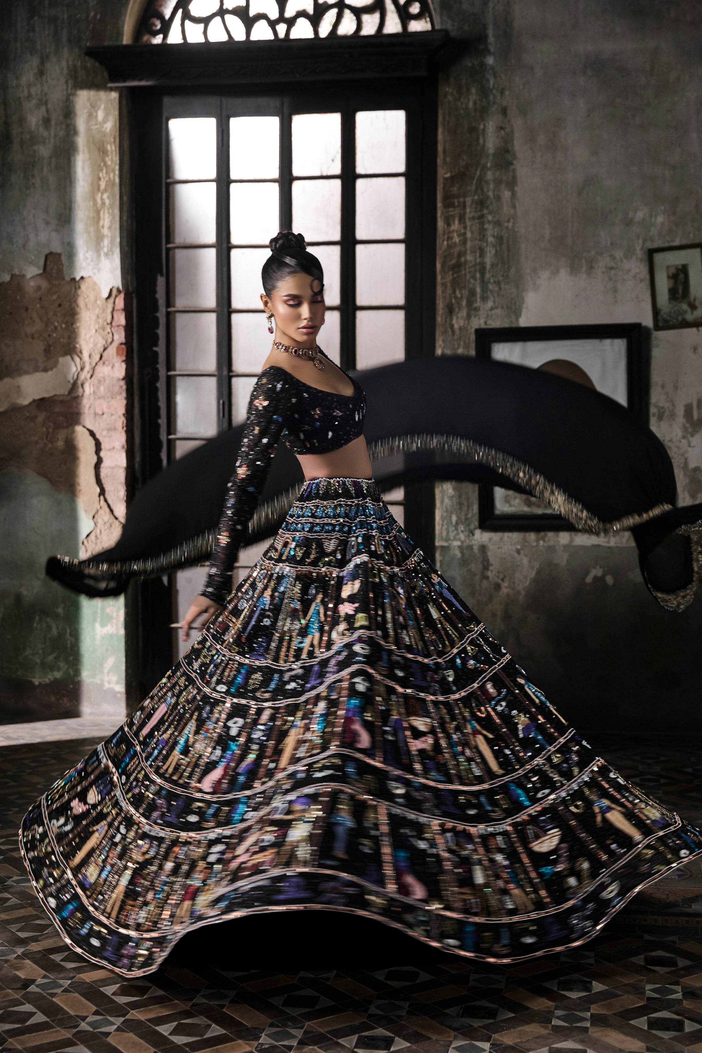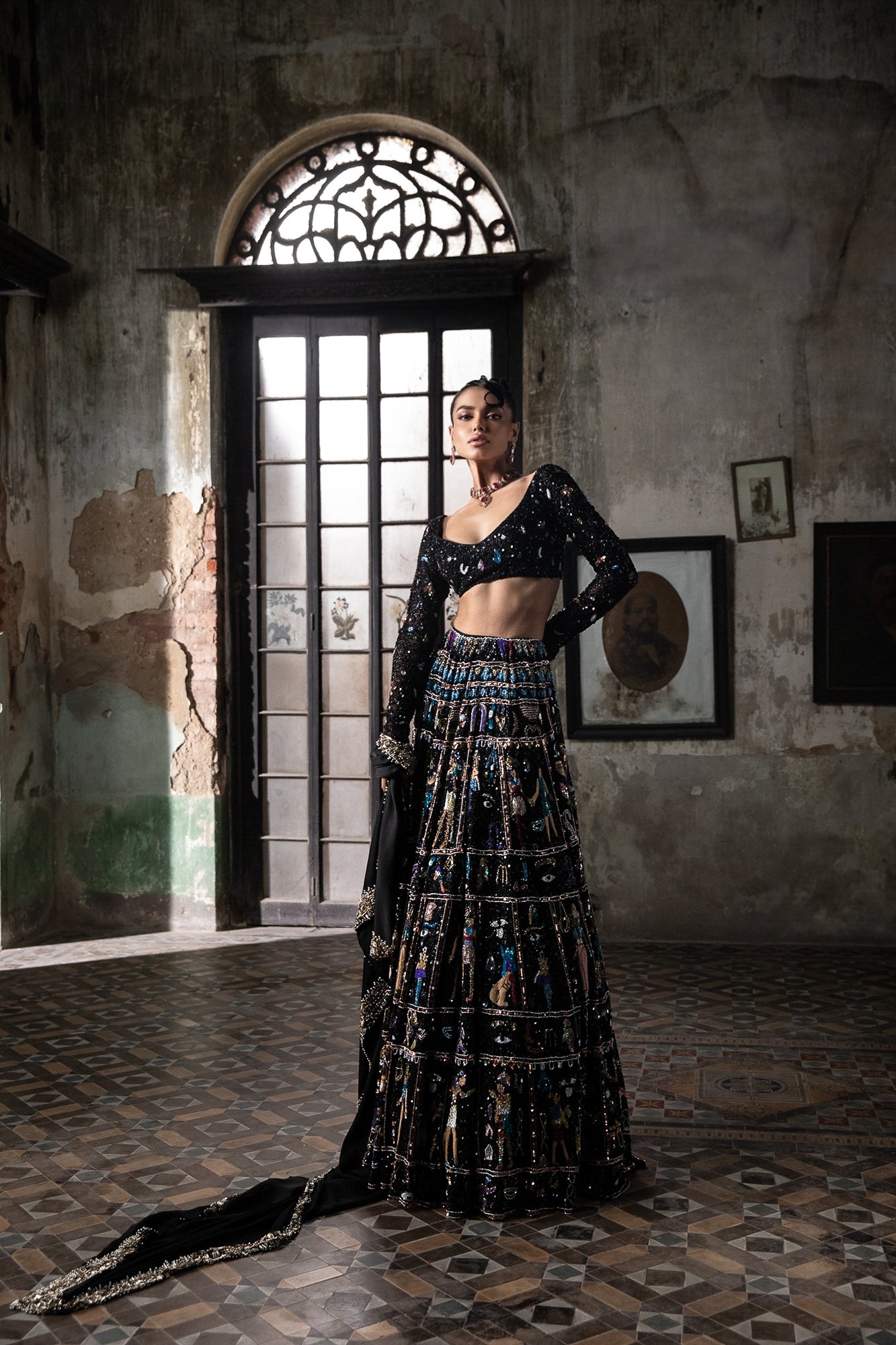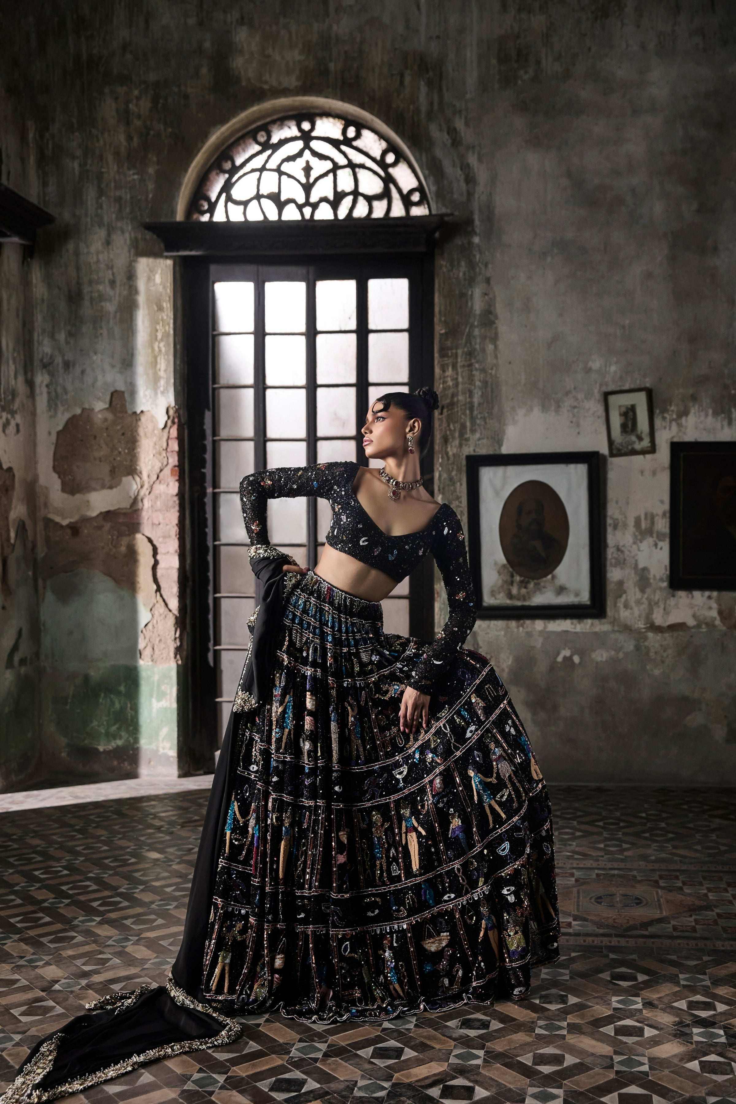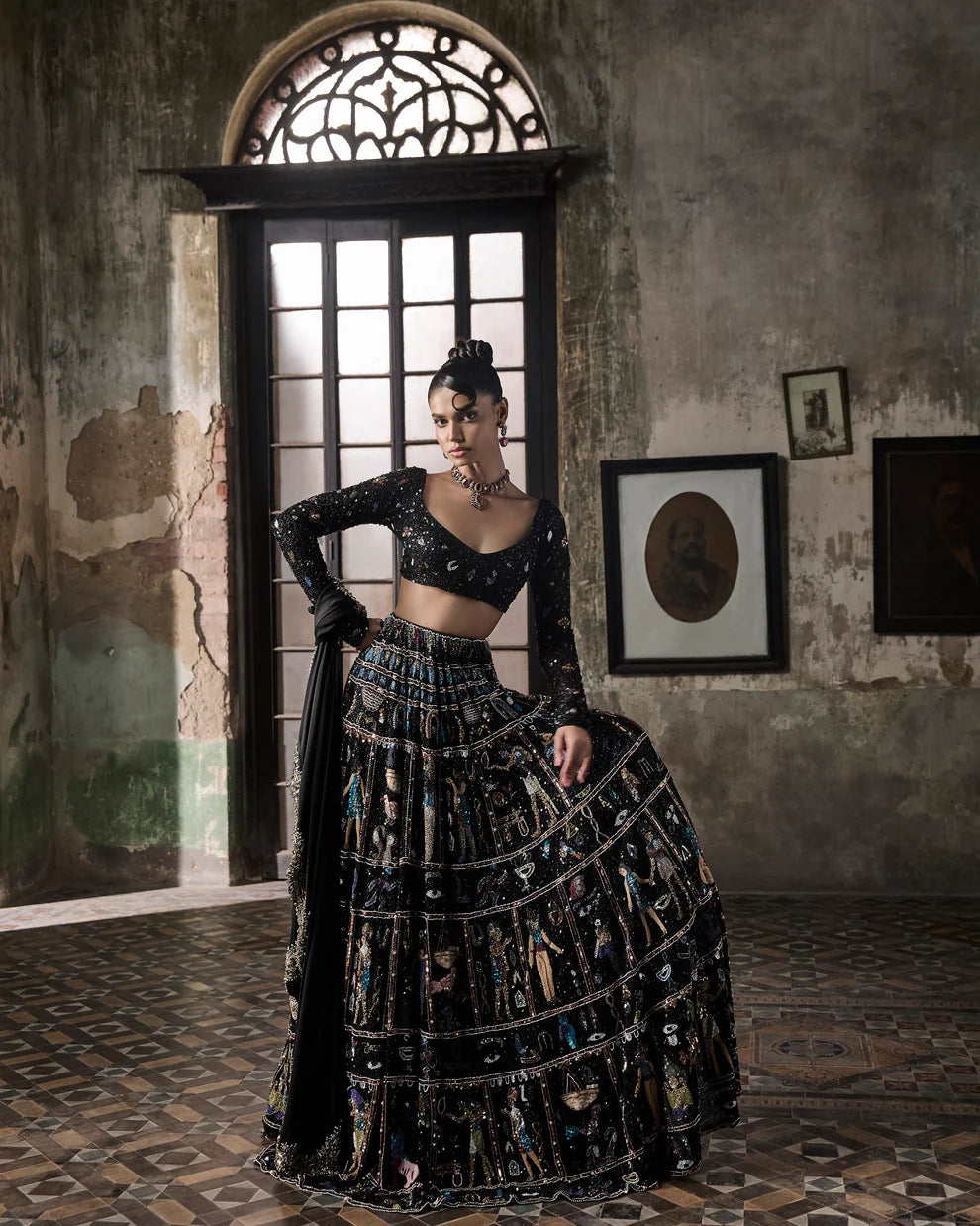 Black Georgette Lehenga Set With Egyptian Motifs