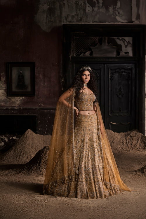 Gold Organza Lehenga With Corset and Dupatta
