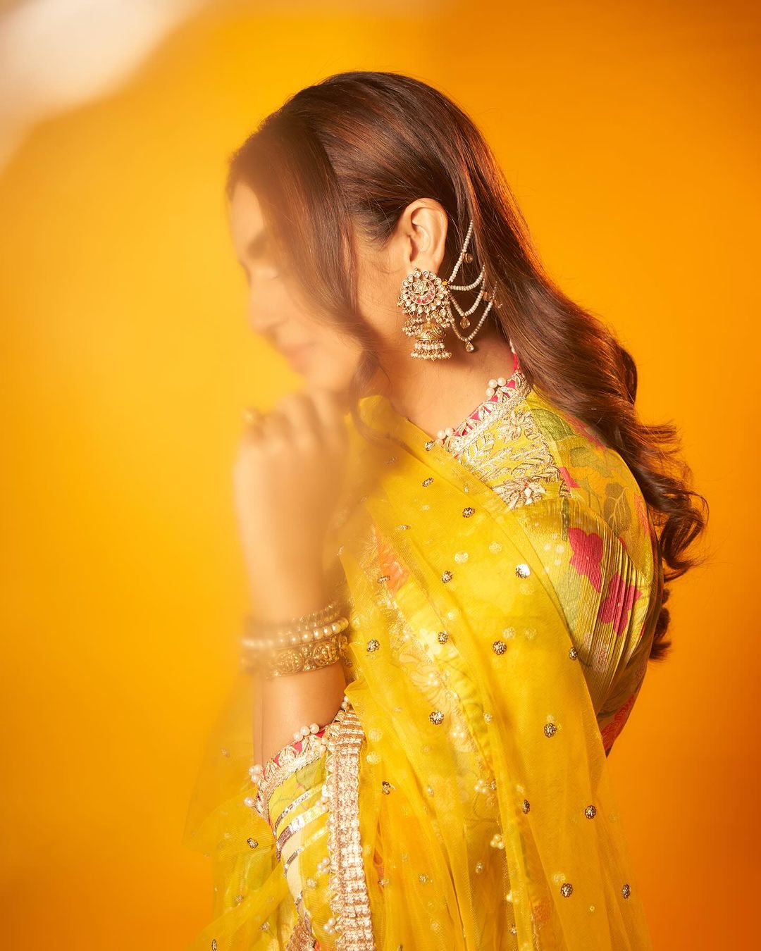 Introducing our vibrant yellow floral printed palazzo set, featuring exquisite embroidery and a tiered front open design. Complete with palazzo pants and a matching dupatta, this ensemble promises effortless elegance and feminine allure for any special event or festivals.