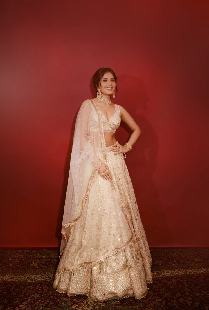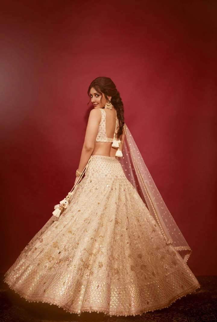 Fabric - " Lehenga: Organza, Blouse: Tussar, Dupatta: Net"