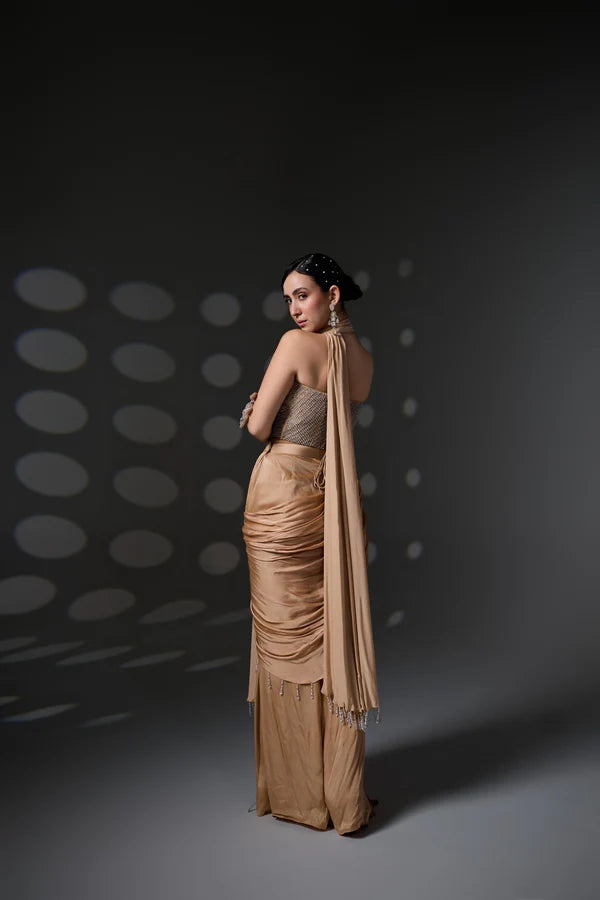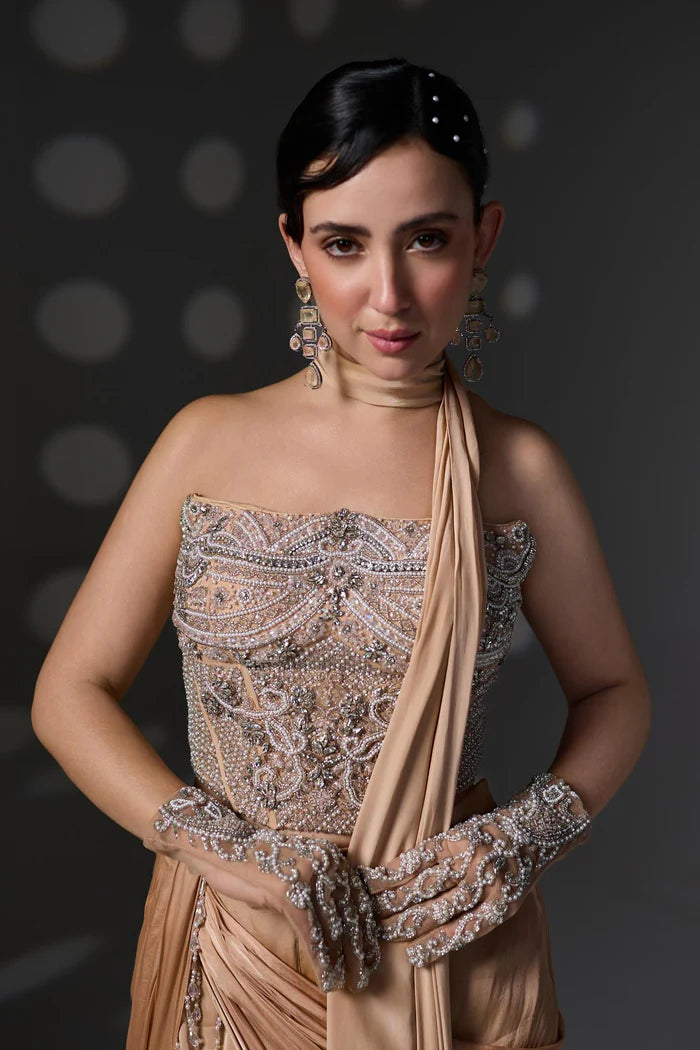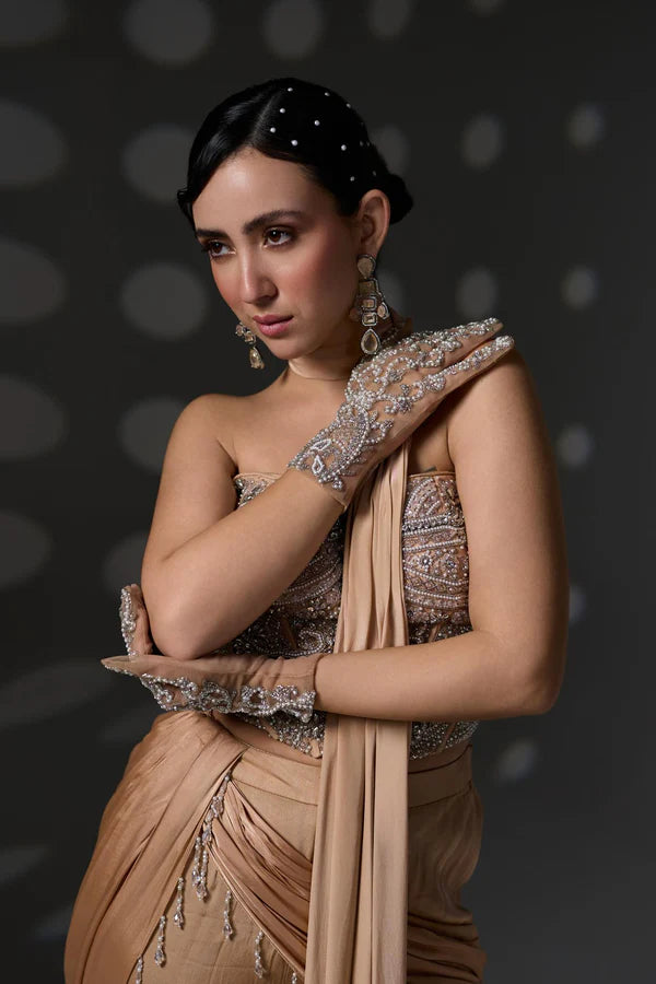 Perfect for cocktail nights, festive occasions, or statement-making pre-wedding events, this look celebrates modern femininity with a touch of heritage.