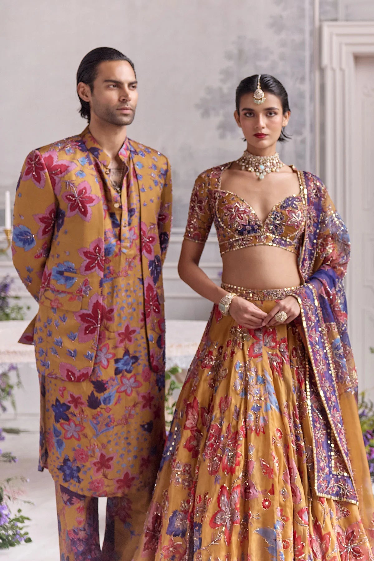 PRINTED KURTA SET WITH SIGNATURE MM BUTTON DETAILINGS