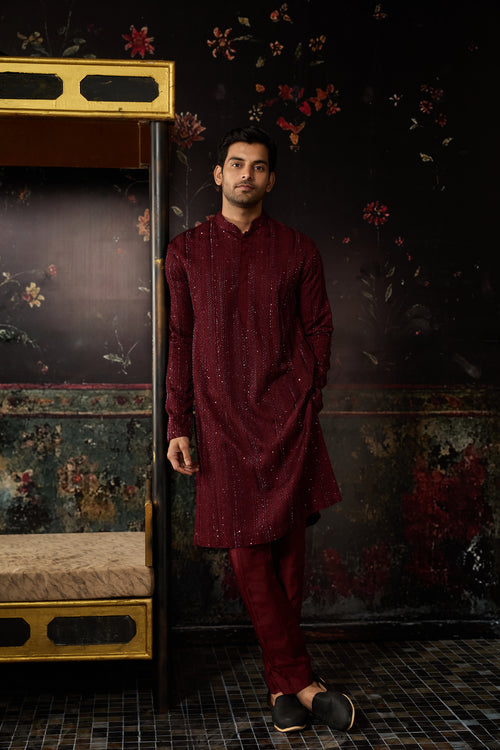 Maroon Embroidered Kurta & Pants