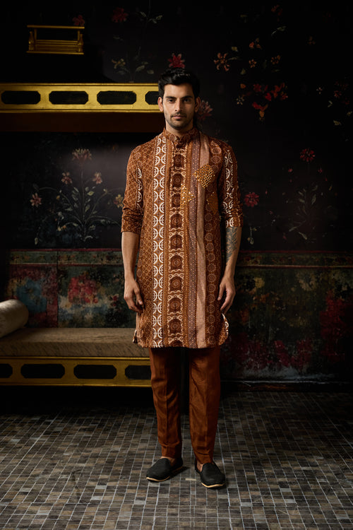 Caramel & Ivory Print & Highlighted Kurta &Pants