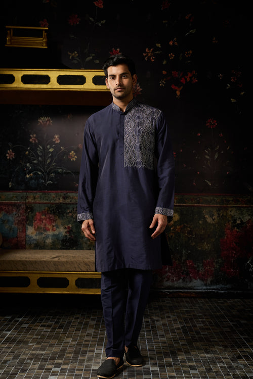 Blue Print & Highlighted Bundy,Kurta And Pants Set