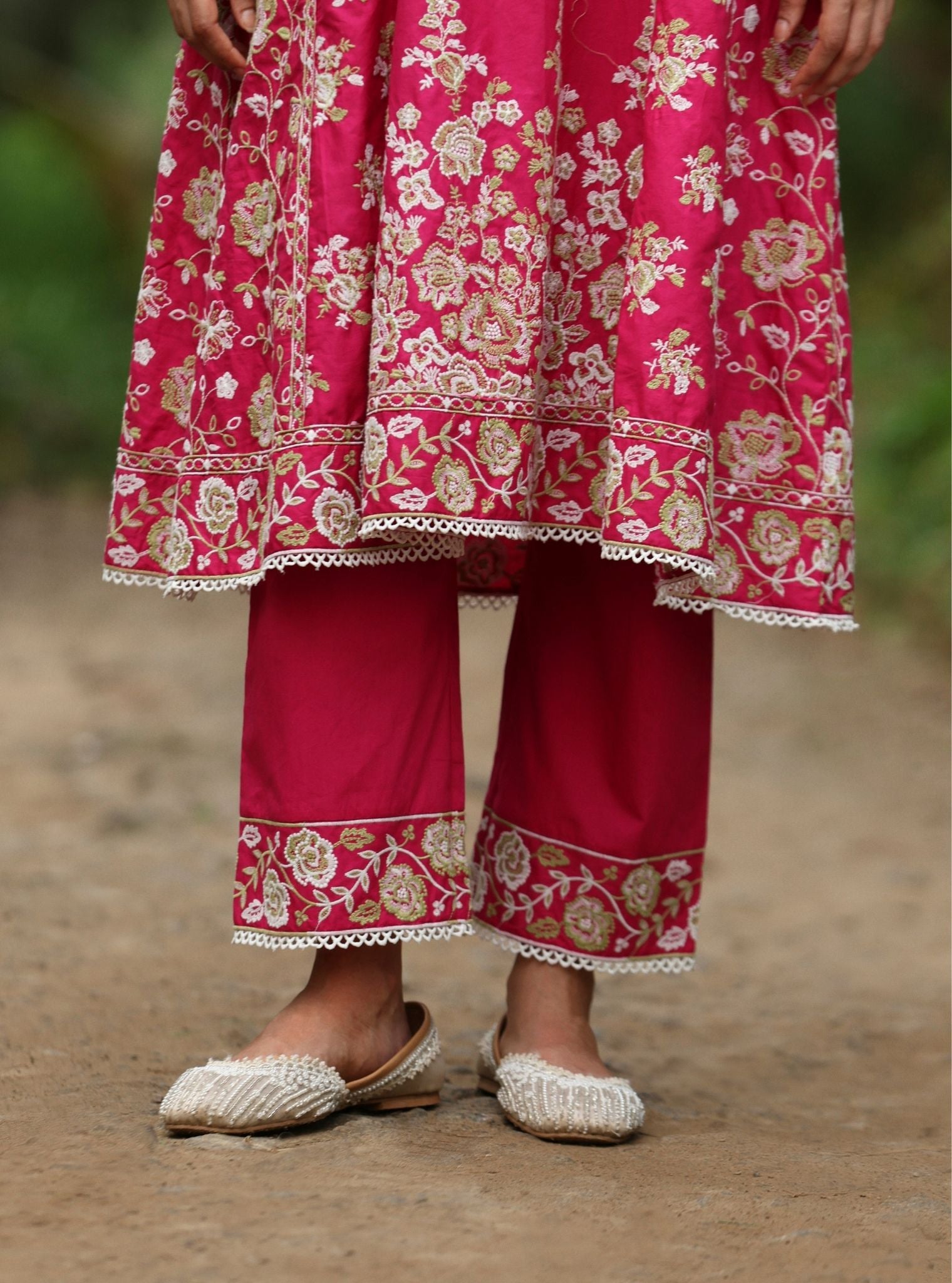 Aavya Fuschia Anarkali Kurta With Cotton Aavya Fuschia Pant