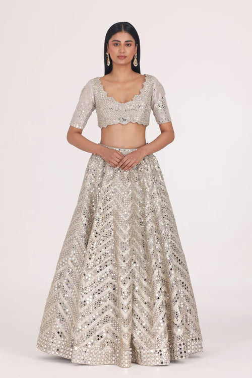 MIRROR EMBELLISHED TISSUE LEHENGA SET