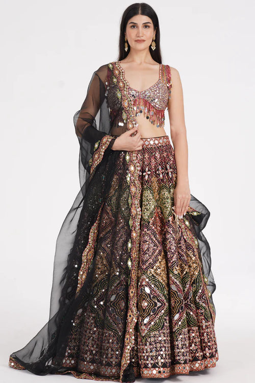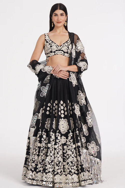 Jet Black Lehenga Set Embellished Using Ivory Details