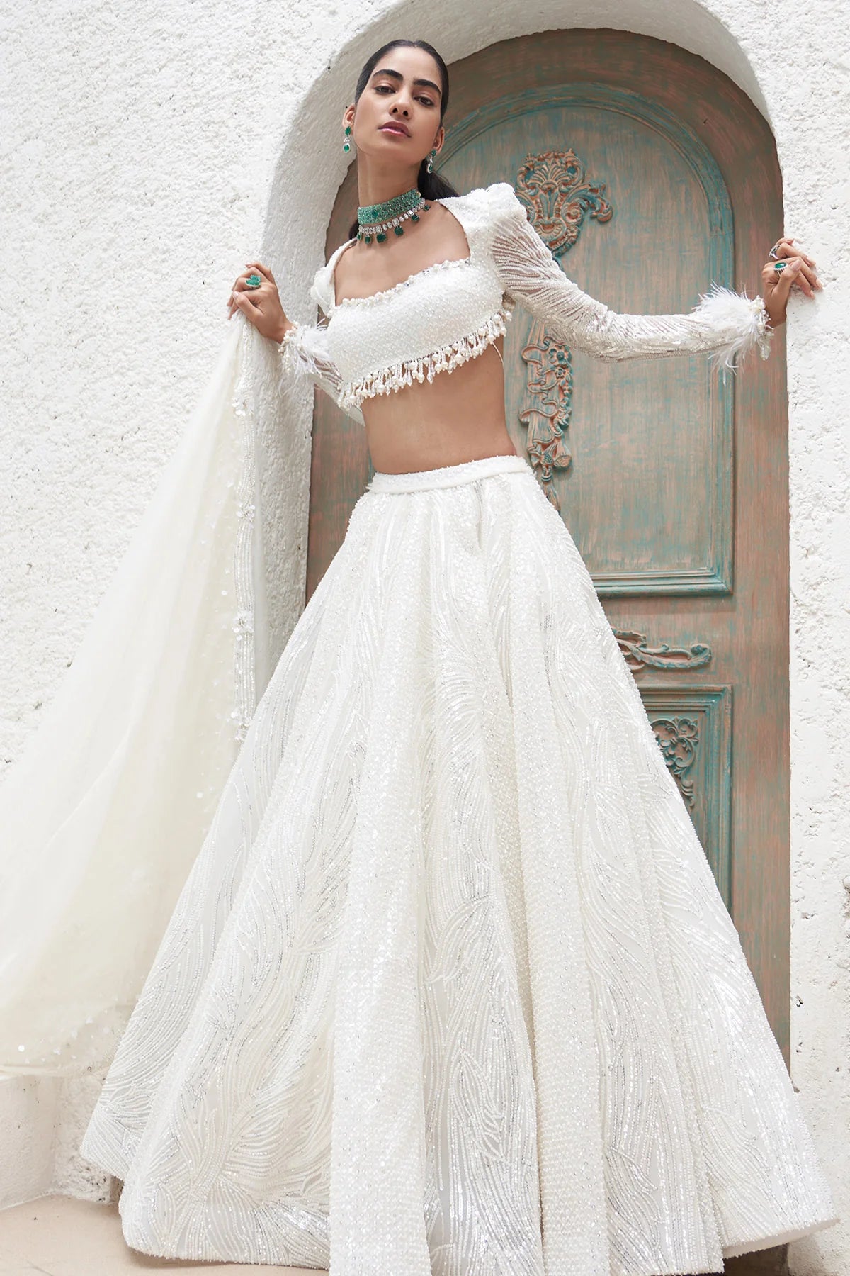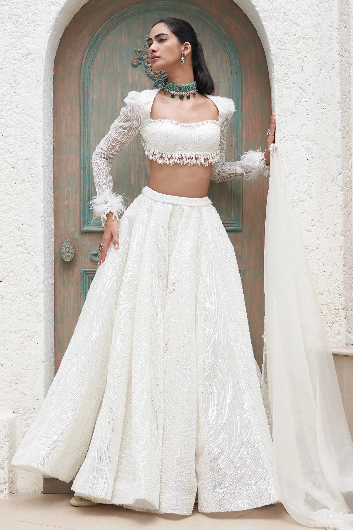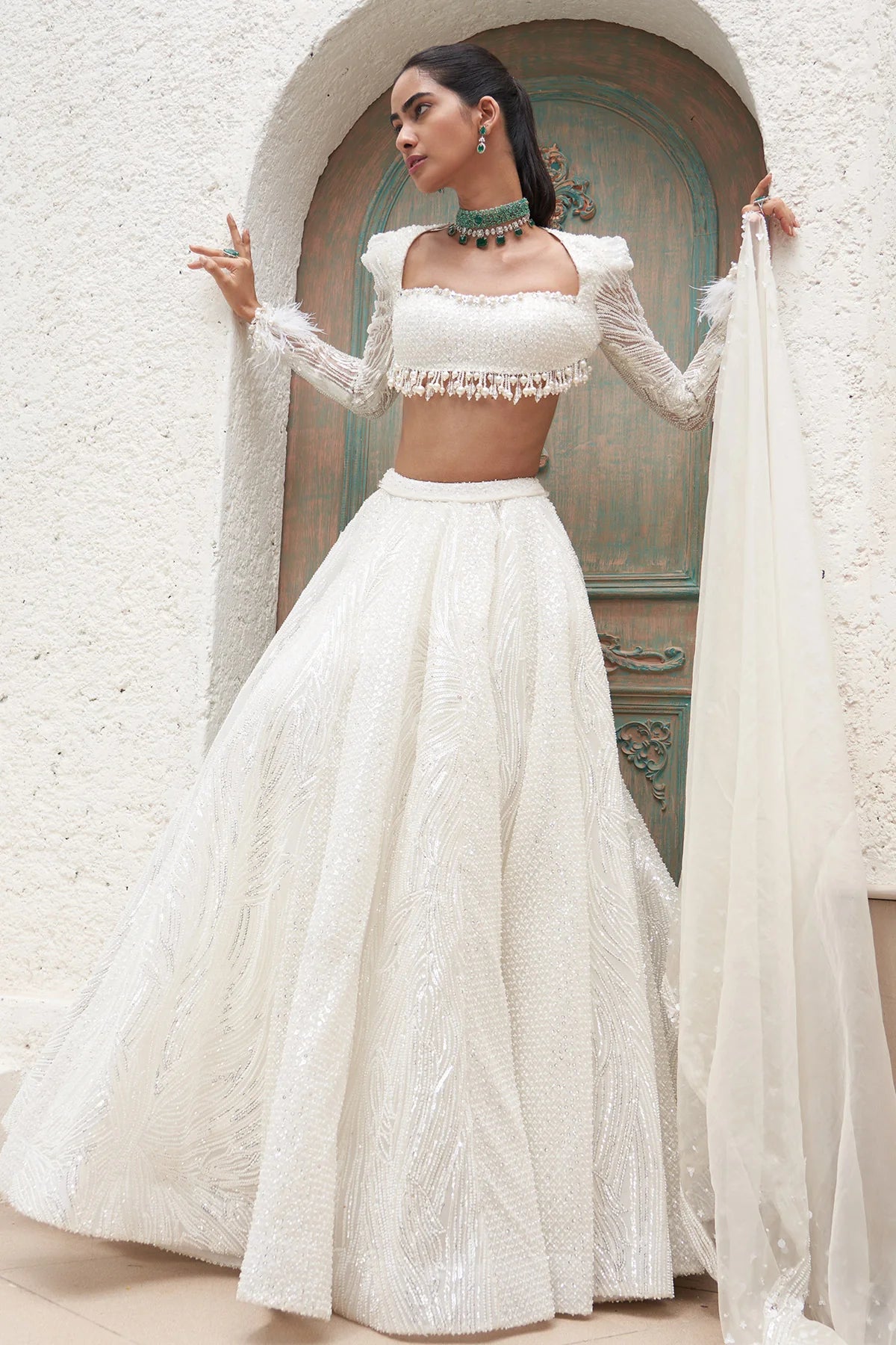 Embroidered Blouse And Lehenga With Embroidered Organza Dupatta