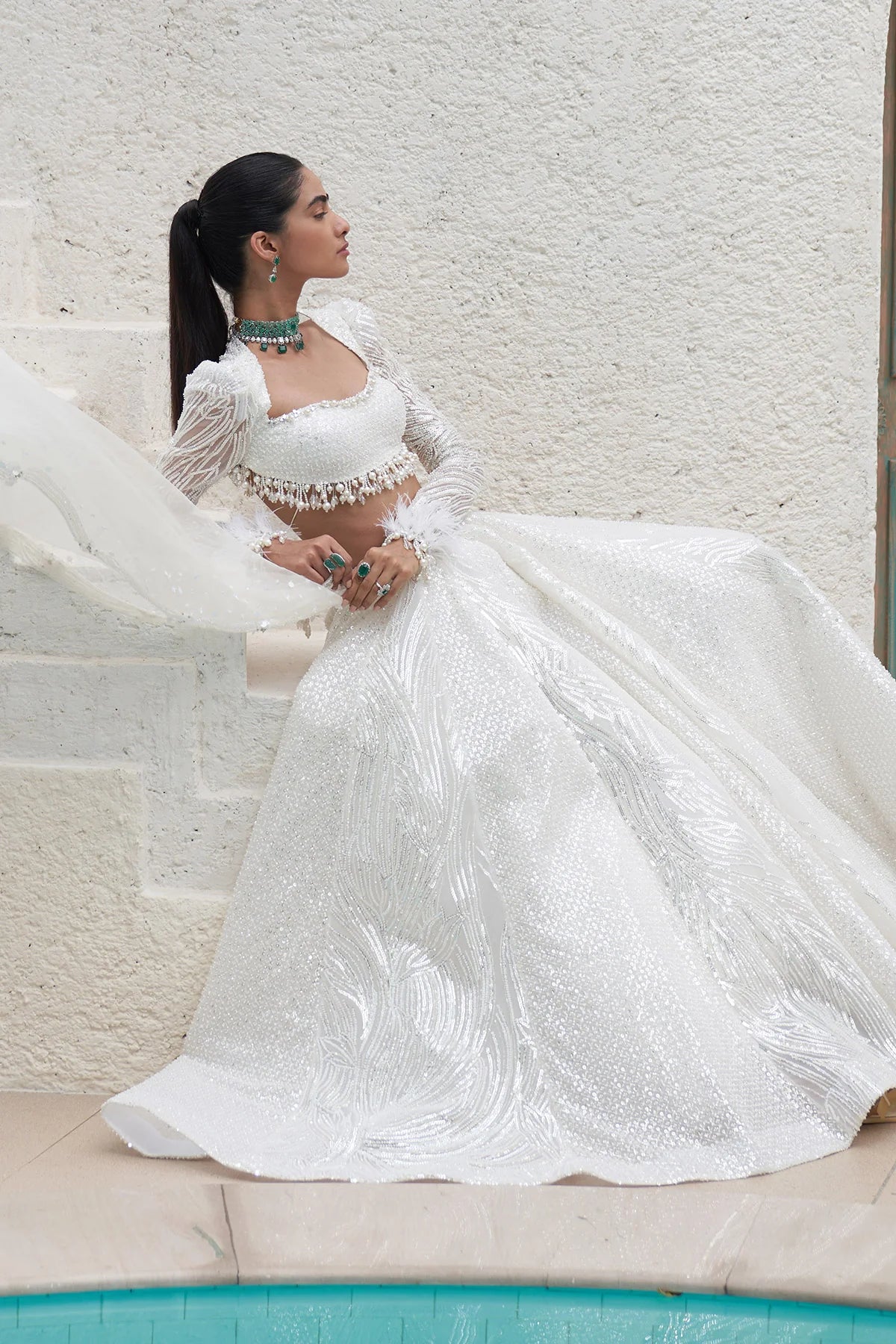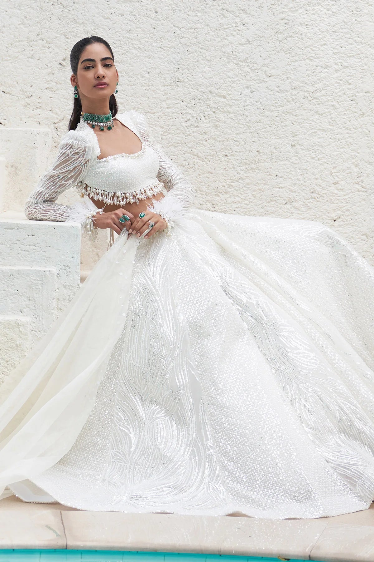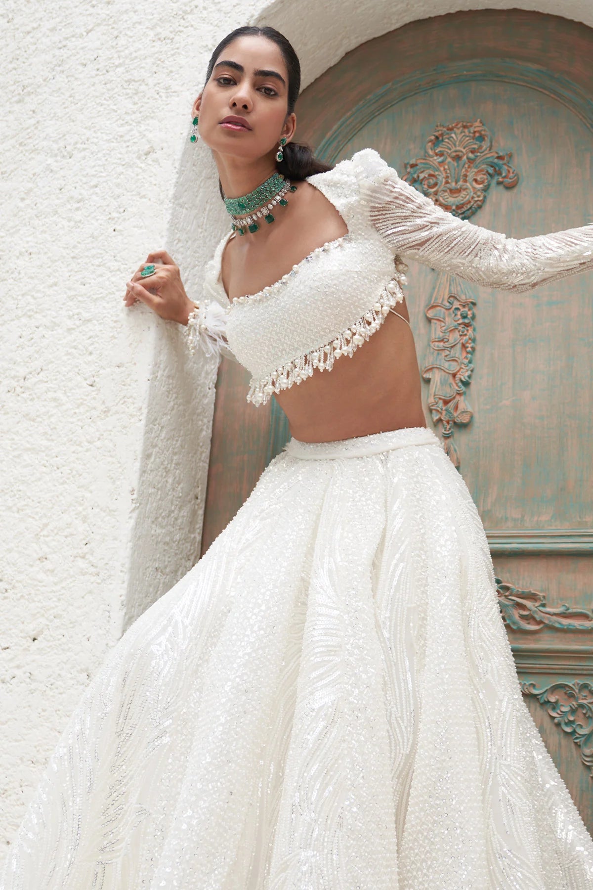 Embroidered Blouse And Lehenga With Embroidered Organza Dupatta