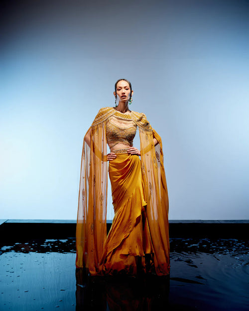 AMBER CAPE FISH CUT LEHENGA