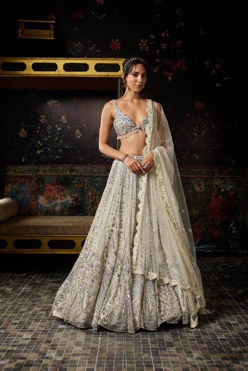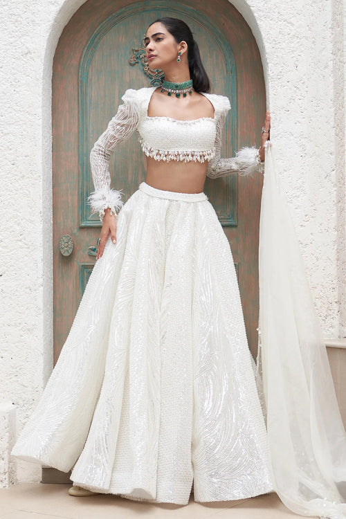 Ivory Fully Embroidered Scallop Lehenga Set