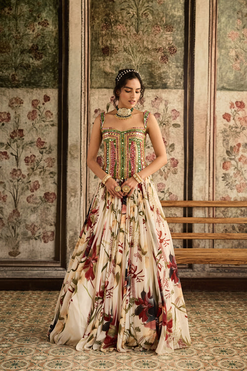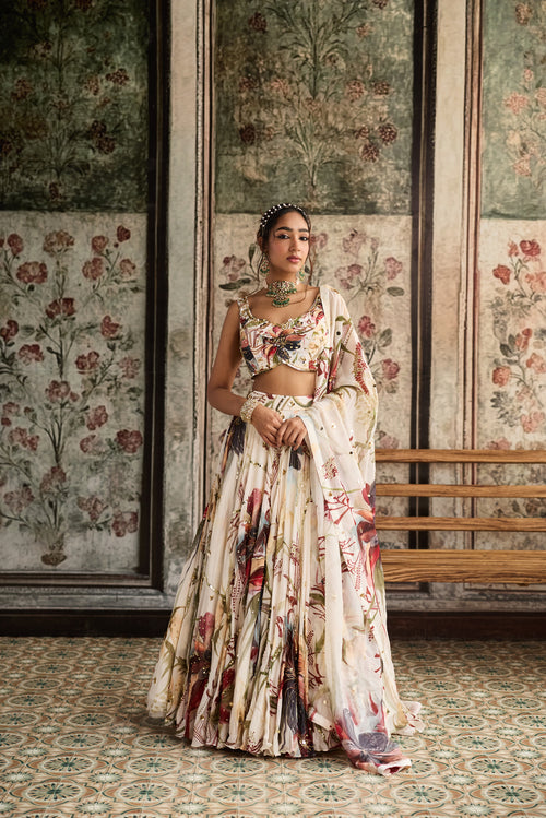 Ivory Floral Printed Lehenga Set