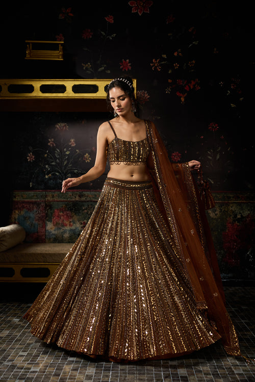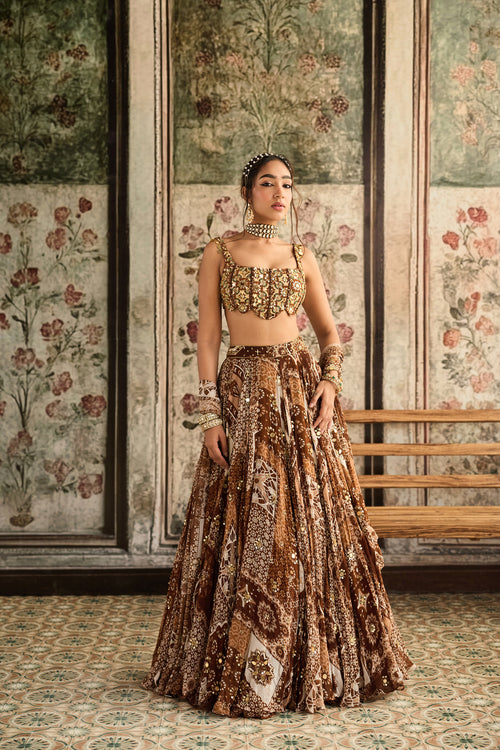 Caramel Print And Highlighted Scallop Blouse Lehenga Set