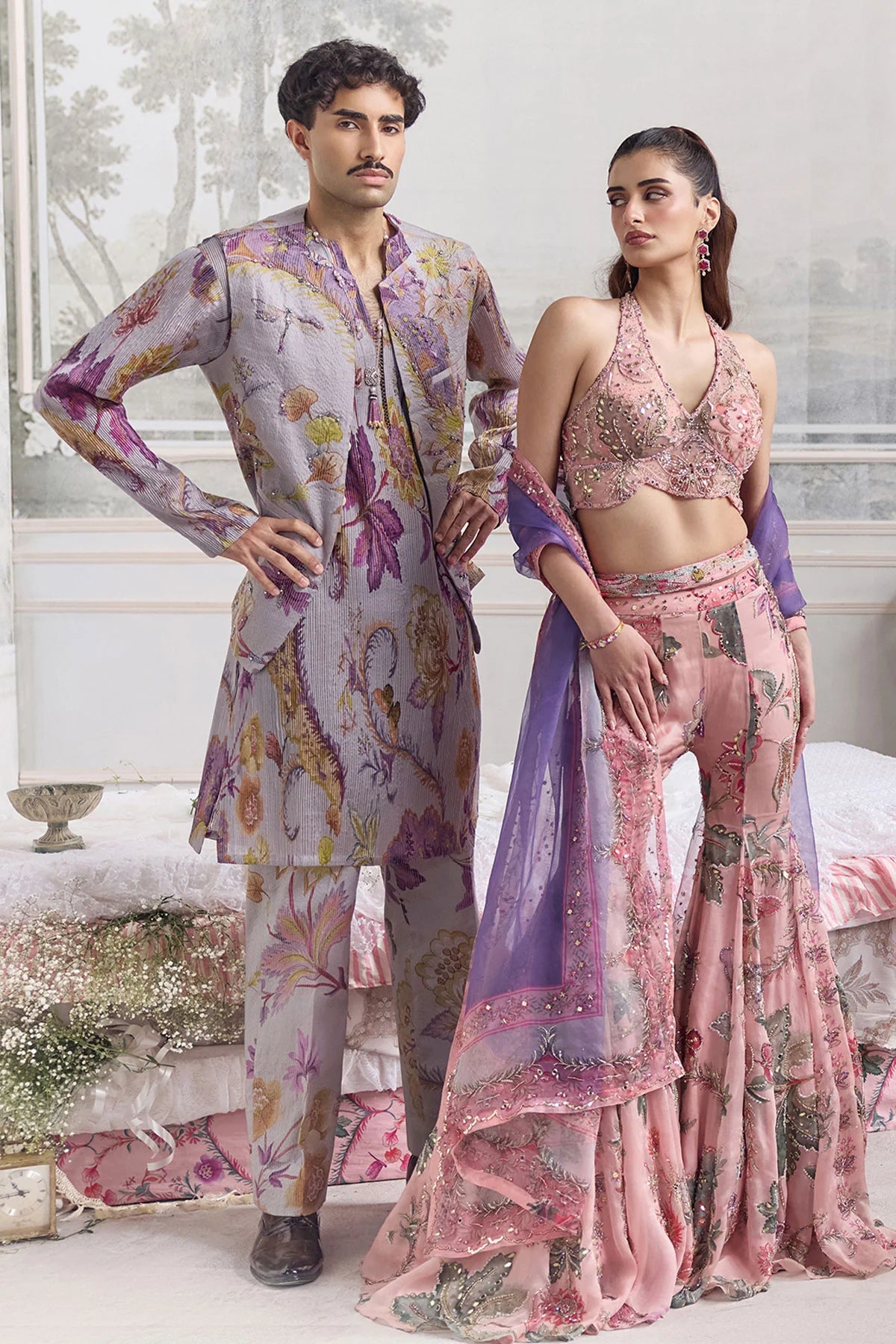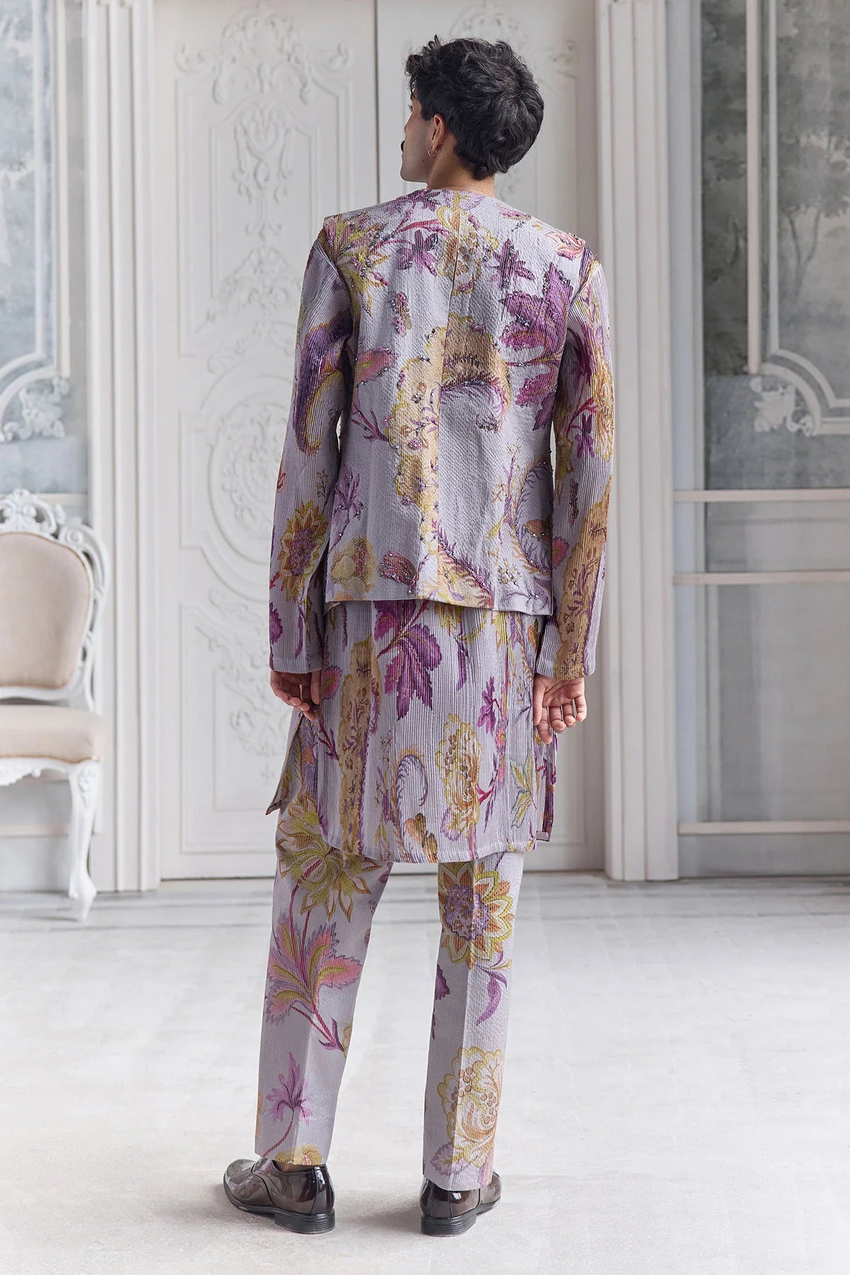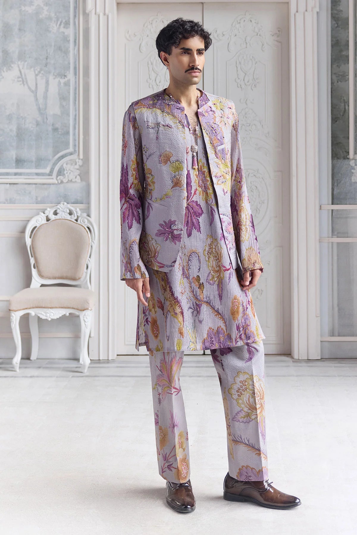 QUILTED HAND EMBROIDERED BUNDI PAIRED WITH MID LENGTH KURTA AND PANTS