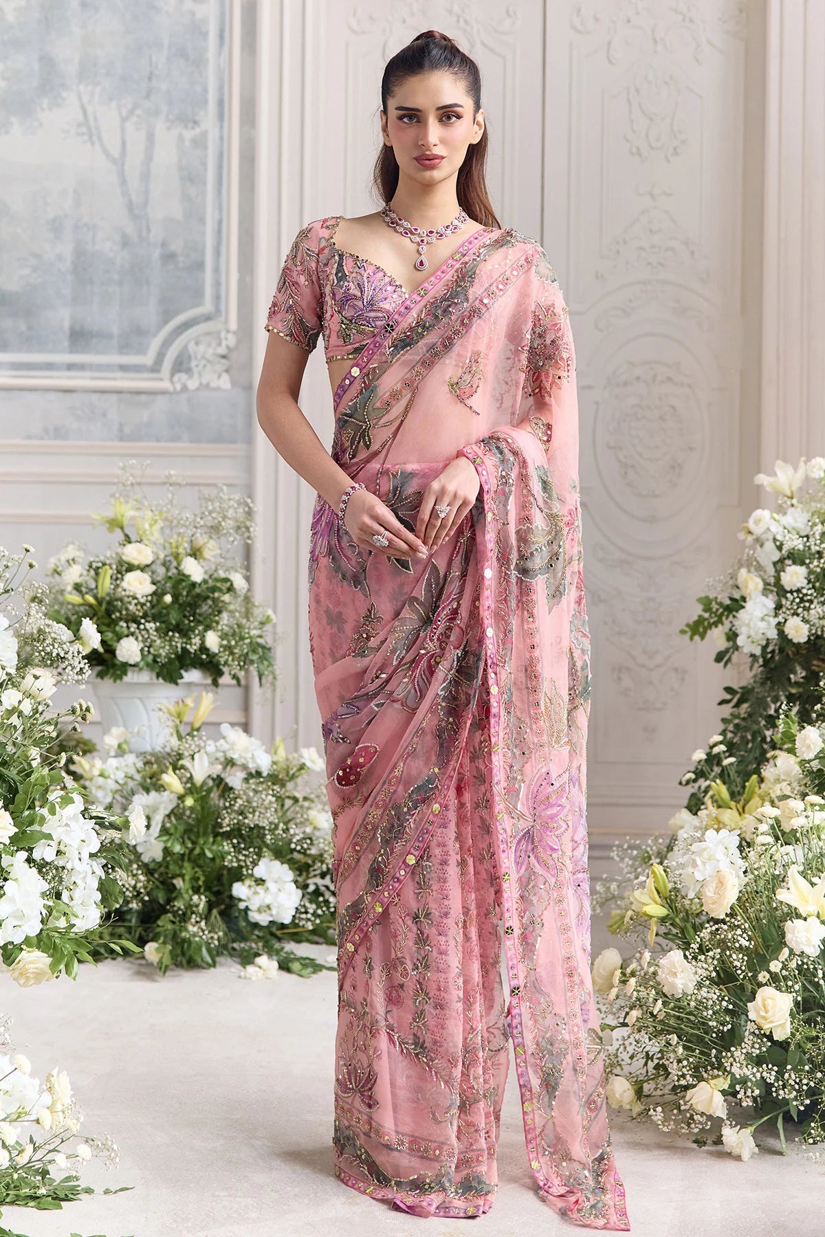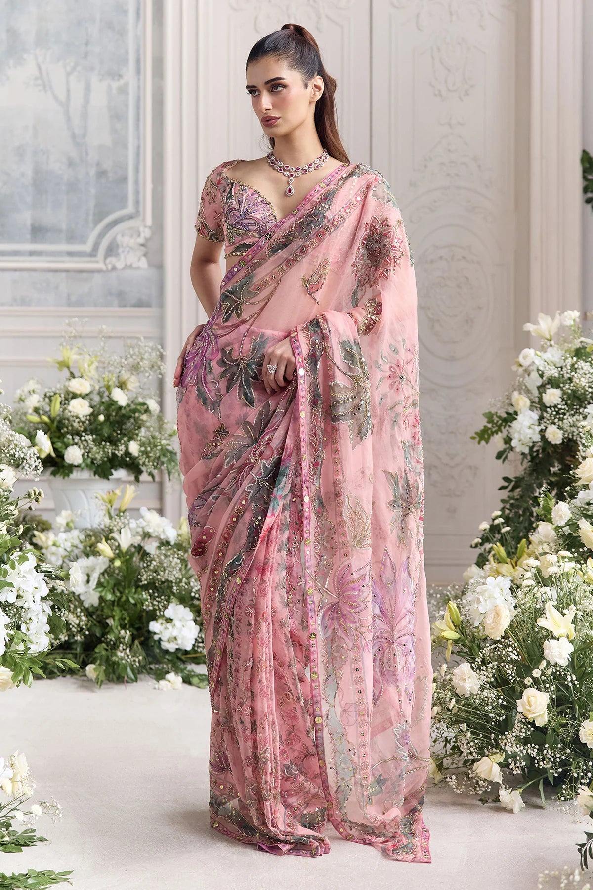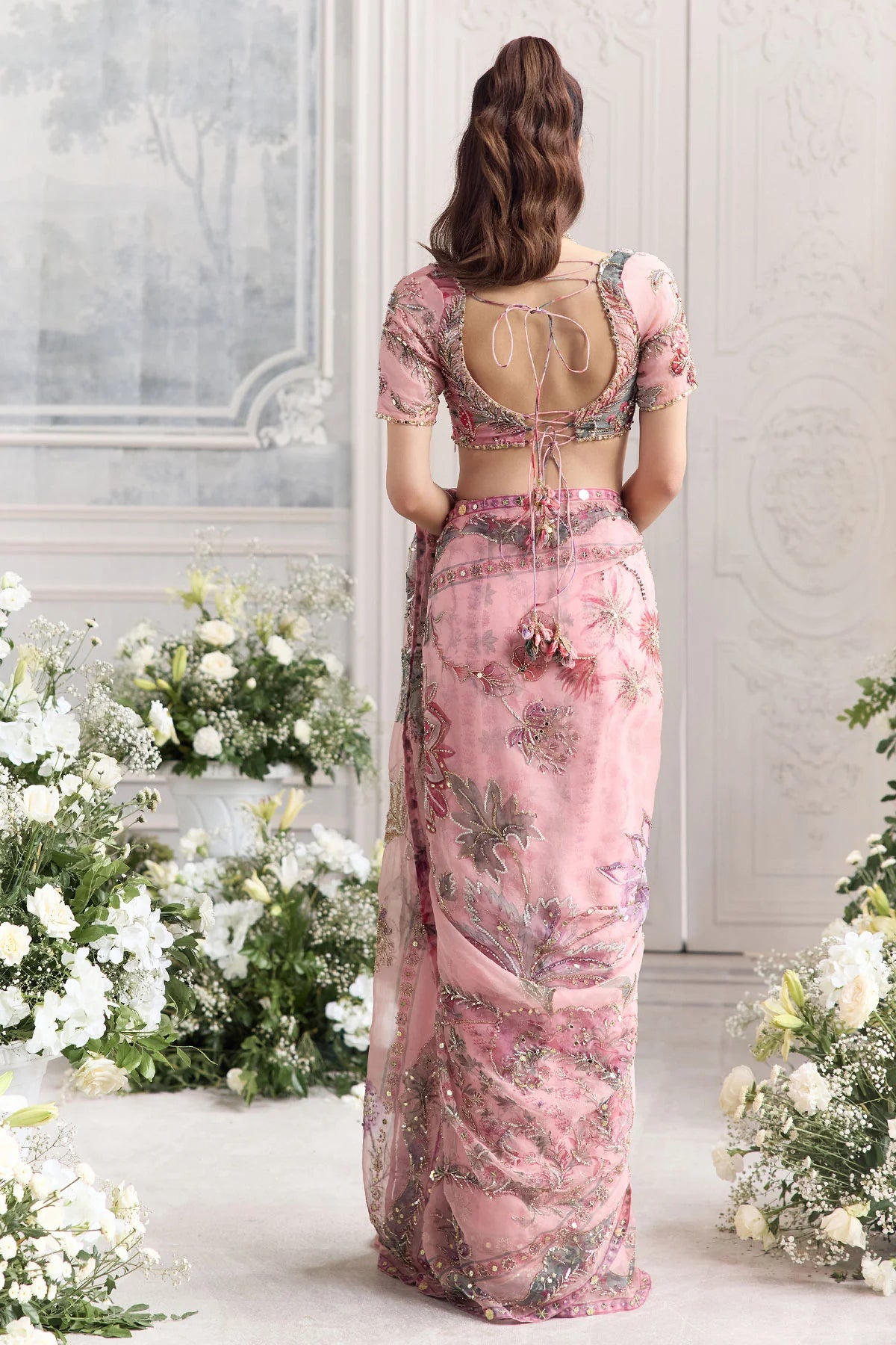 EMBROIDERED CHOLI CUT BLOUSE PAIRED WITH EMBROIDERED PREDRAPED SAREE