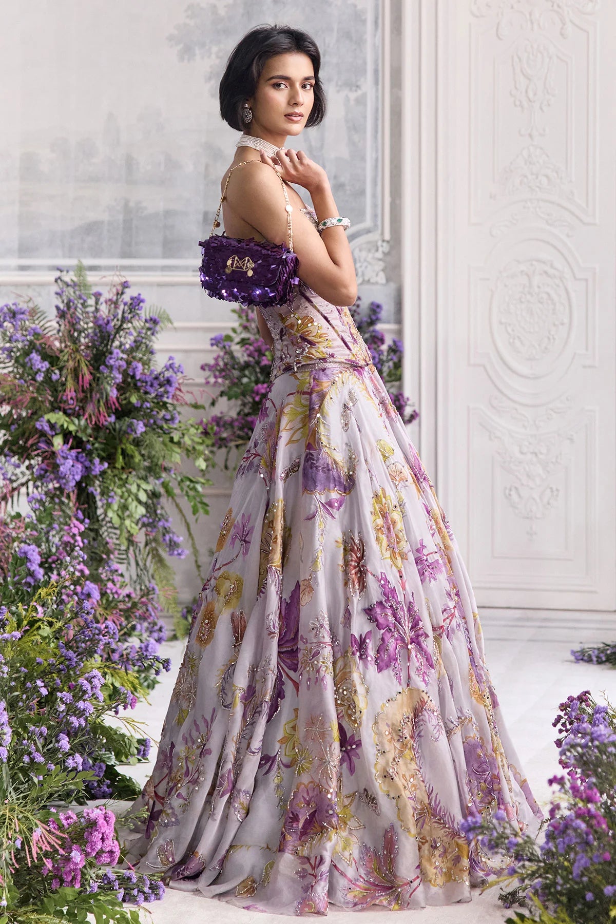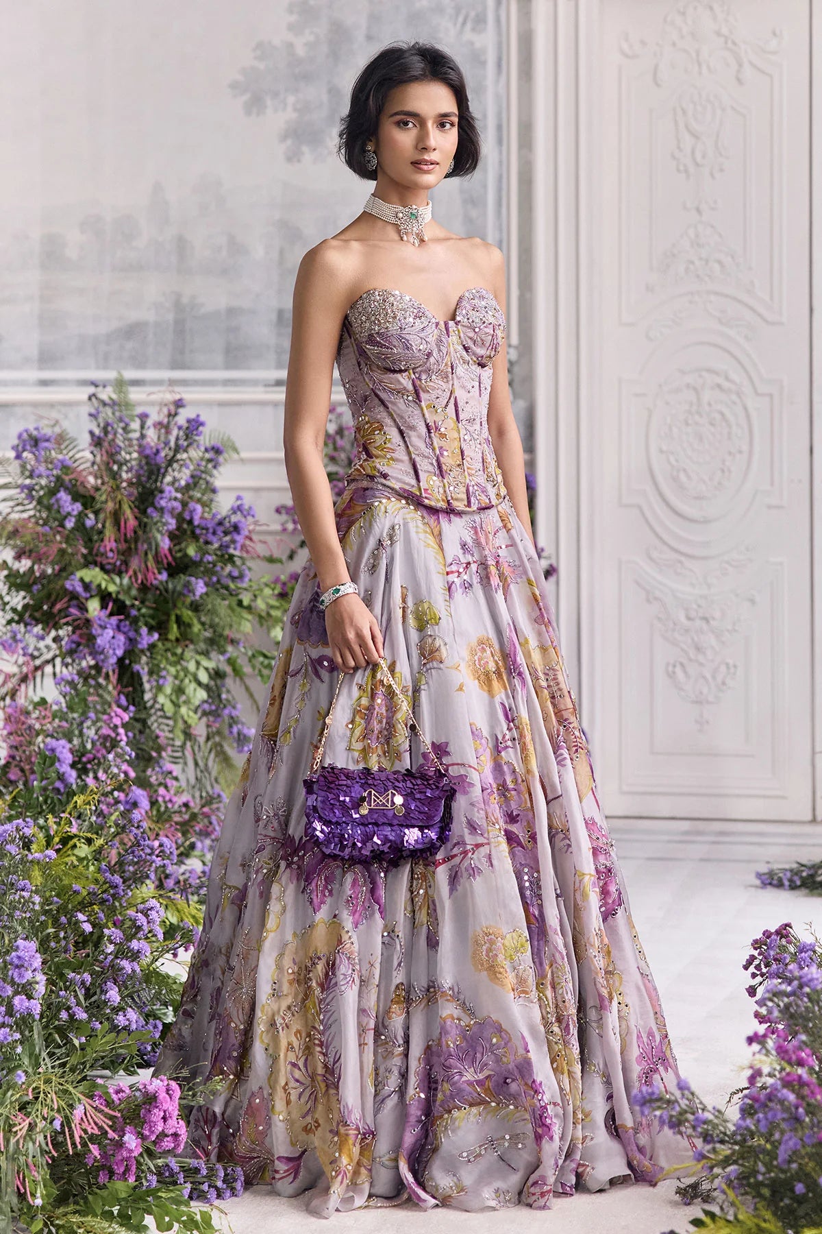 HEAVY HAND EMBROIDERED CORSET WITH EMBRODIERED LEHENGA