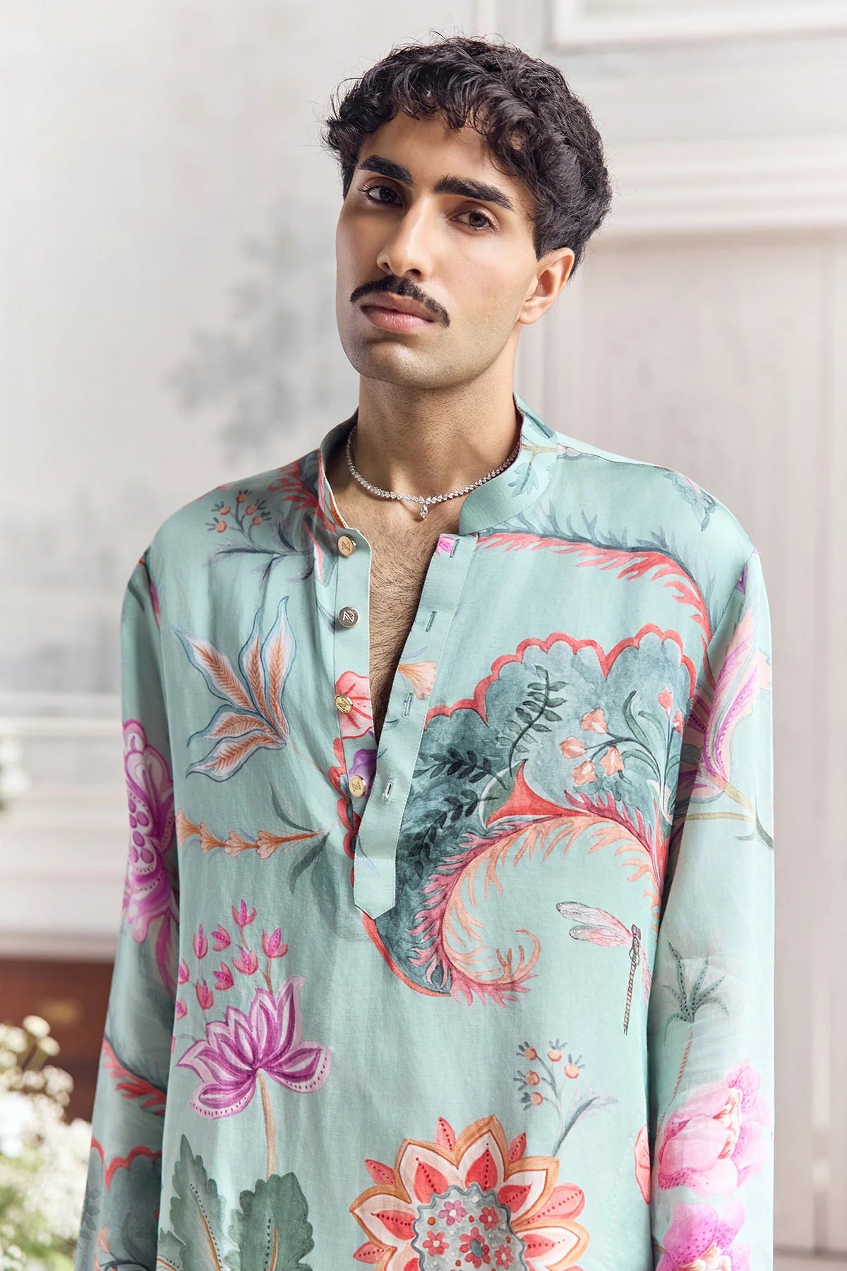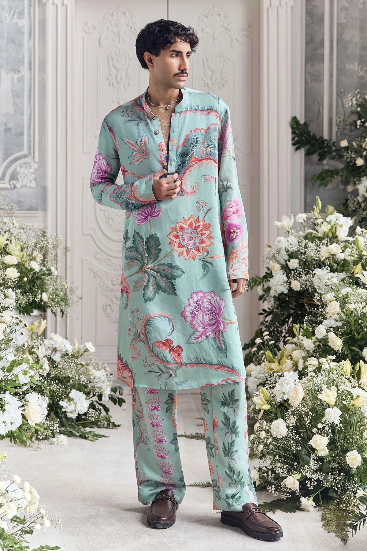 PRINTED KURTA SET PAIRED WITH PINTUCK DETAILING TROUSER