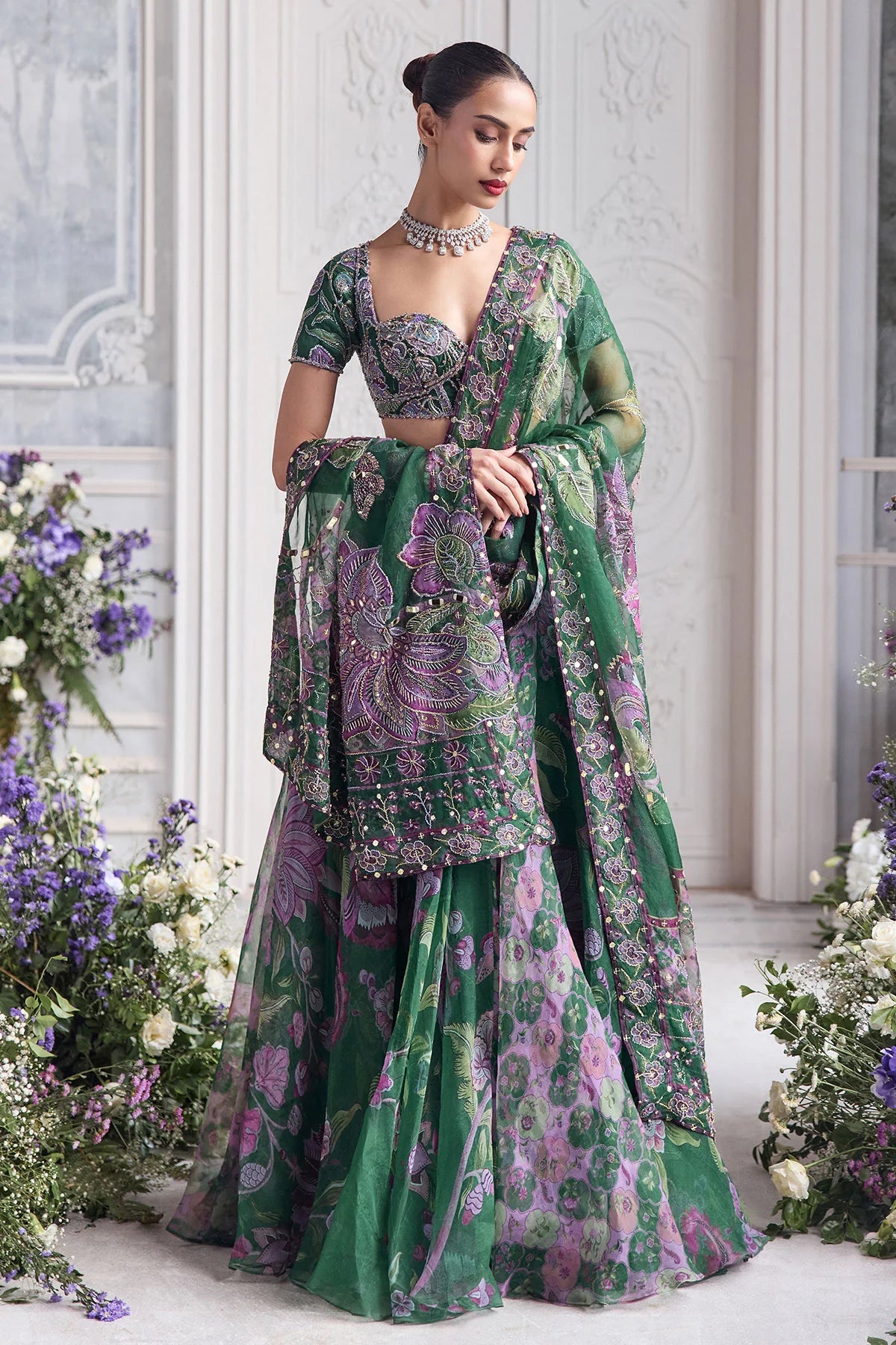 EMBROIDERED BLOUSE AND DUPATTA PAIRED WITH FLORAL LEHENGA