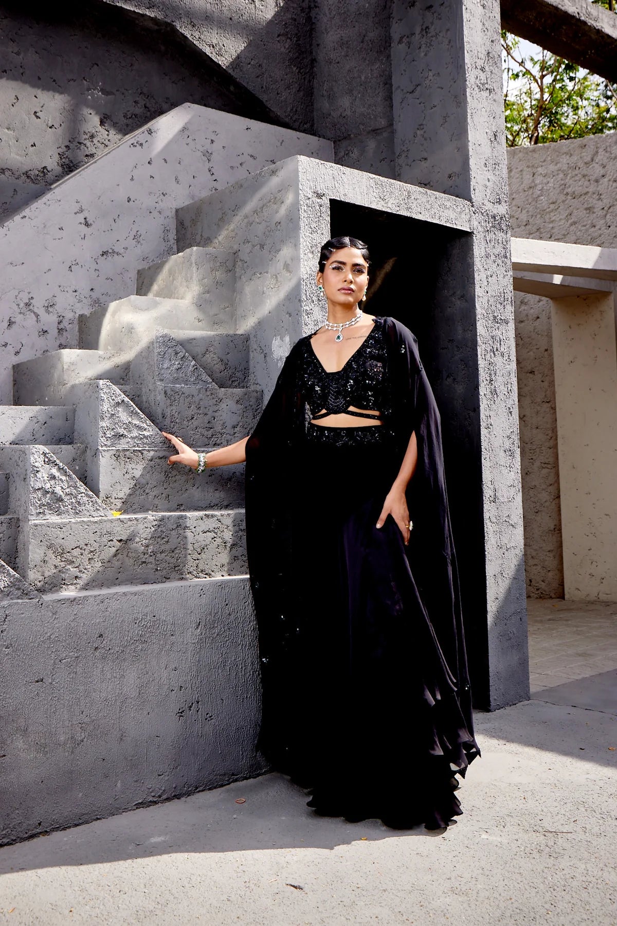 (Cape: 55 inches, Choli: 14.5 inches, Skirt: 45 inches)