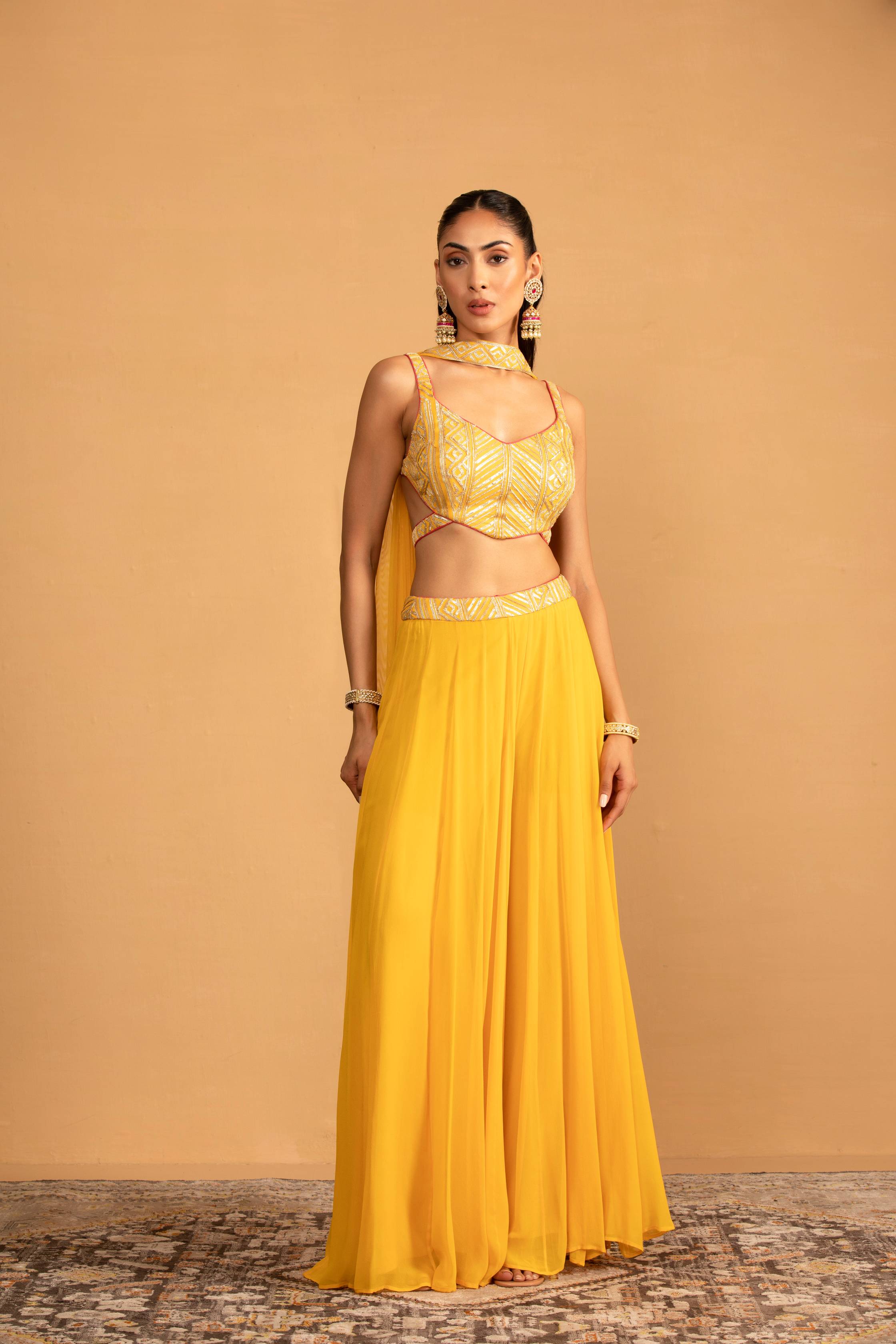Gold Waist Coat and Gold Lehenga Indo Western Fusion