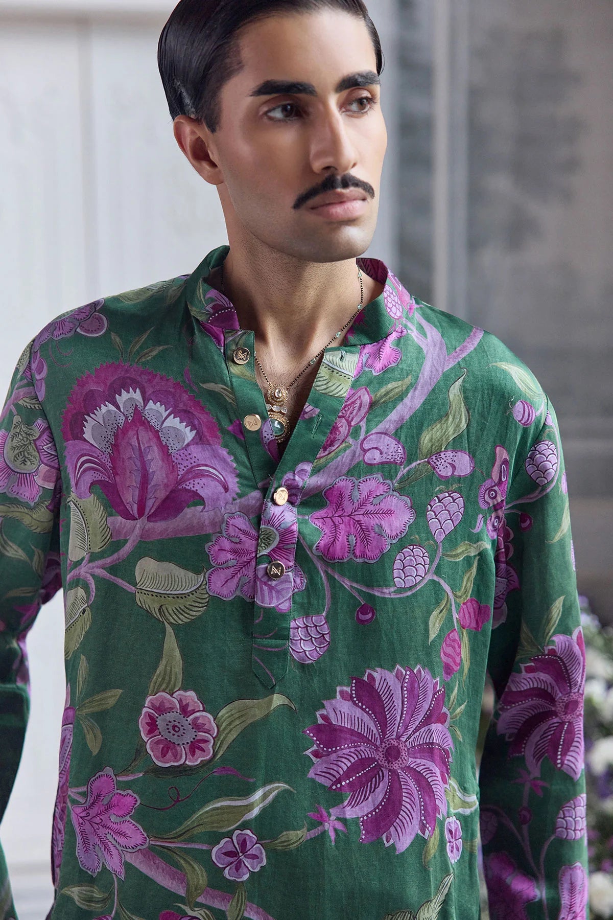 PRINTED KURTA WITH SIGNATURE MM BUTTONS PAIRED WITH TROUSER